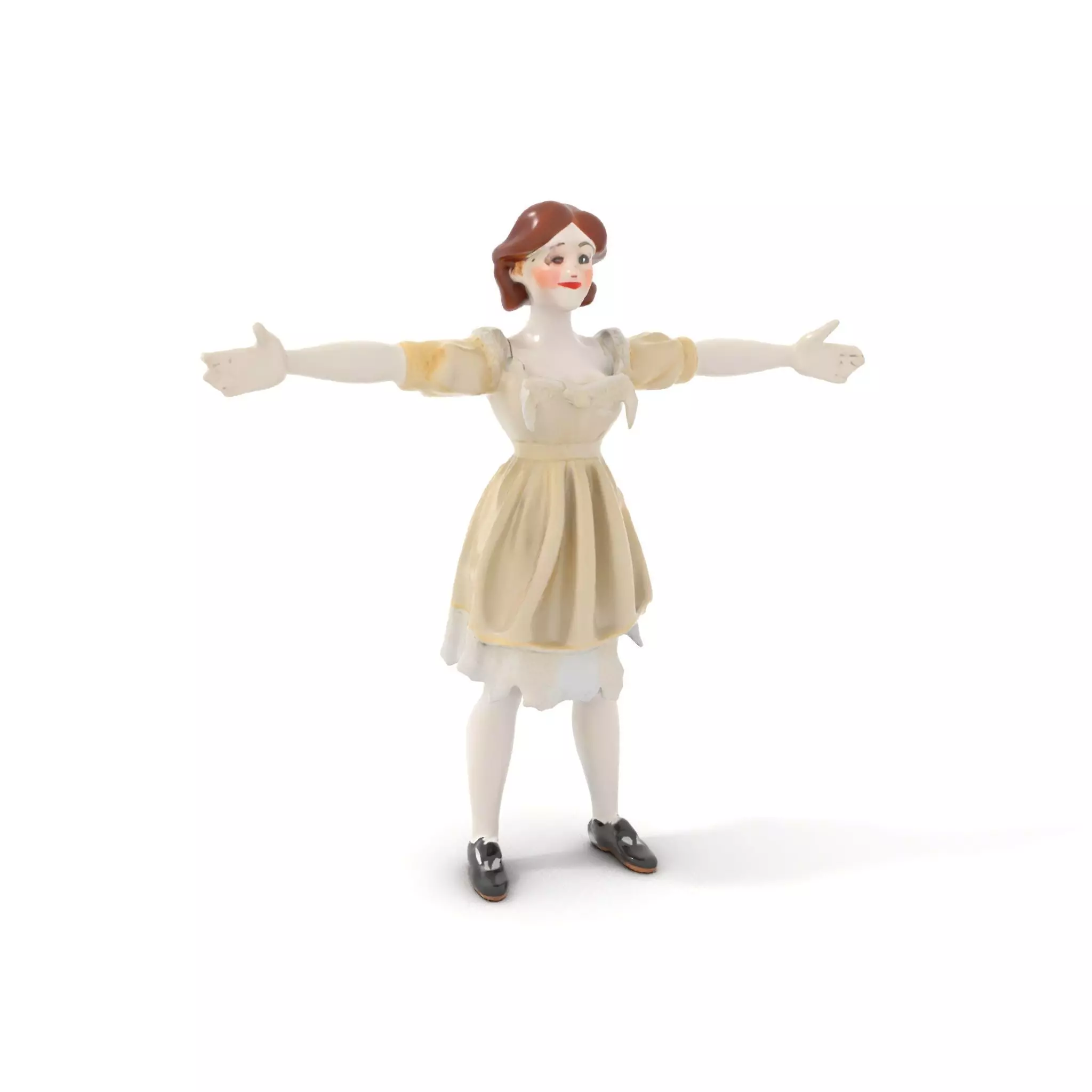 This vintage porcelain doll model brings an elegant and timeless design, perfect for nostalgic scenes or antique-themed projects. Each model has 3 levels of detail: low-poly(1000 triangles for mobile), middle-poly(10 000 triangles for environment), and high-poly(100 000 triangles), which allows for the use of this model in production rendering(such as 3ds max, Maya, Cinema4d, Blender, Vray/Corona/Cycles and all other ), game engines(Unity and Unreal compatible), and interactive presentations, providing a choice of detail based on the LOD System principle. The model's textures are PBR, Diffuse, NormalMap, and reflection/roughness/metallic, which are suitable for any modern rendering engine. All models accurately unwrapped and has no overlapping UV. The delicate lace dress and carefully crafted facial features highlight the model's quality, making it ideal for animation, virtual sets, or historical recreations. All textures are 4096*4096 in size. If you liked this model, please like and leave a comment.