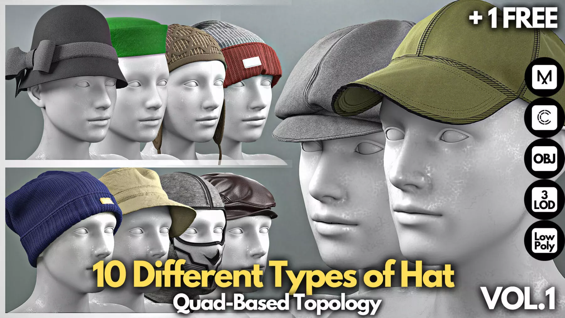This product includes 10 realistic different types of hats both for females and males.