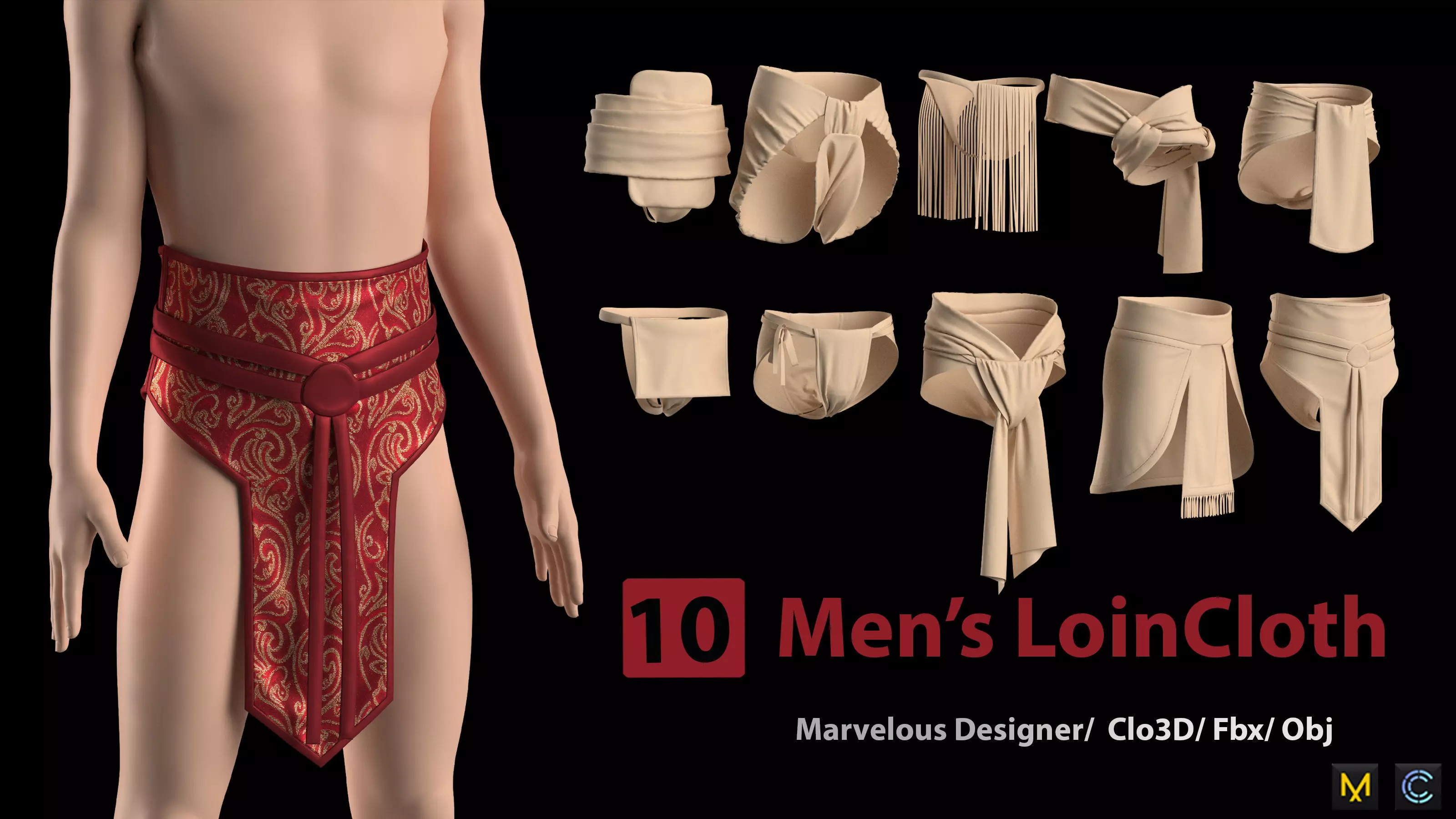 These models of men's LoinCloth created and quad and render in clo3d(7.3) software