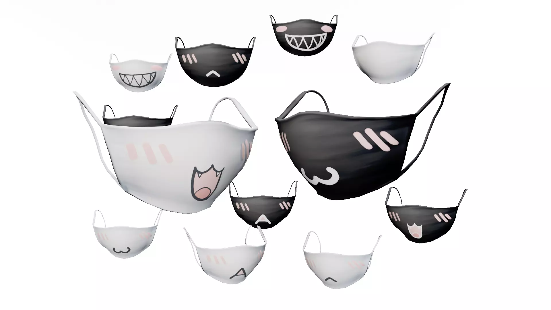 12 Cute Anime female Face masks collection 3D model
