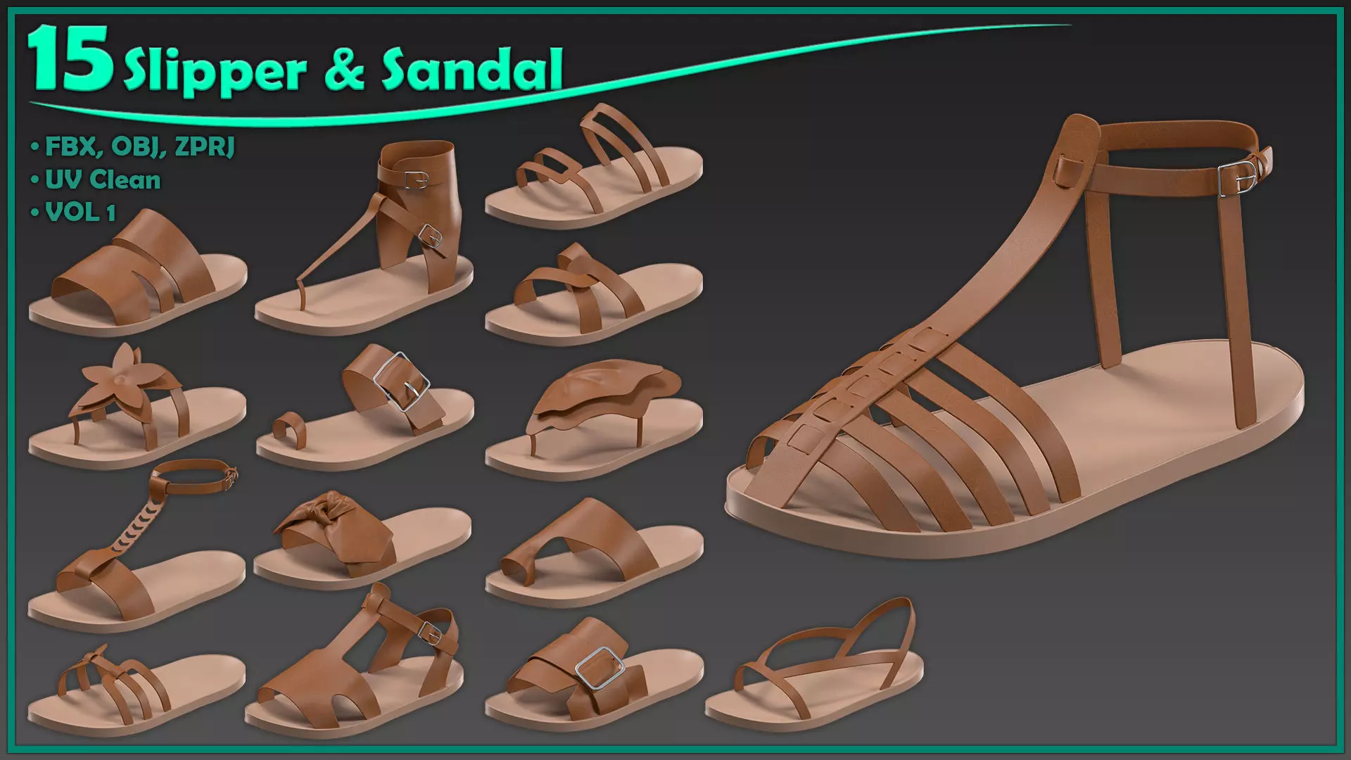 15 slippers and sandals 3D model