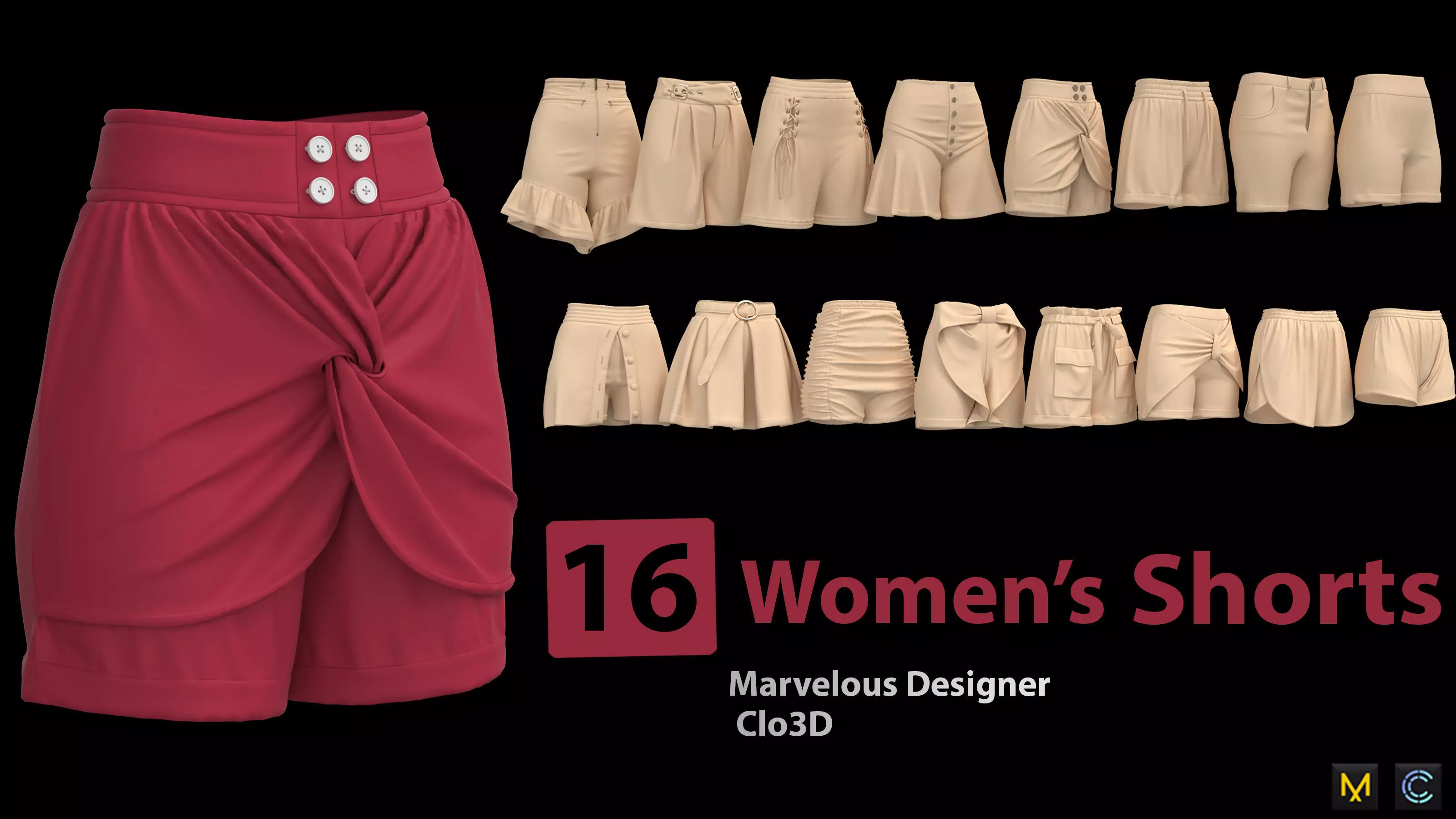 These models of Women's Shorts created and quad and render in clo3d( 6.2) software
