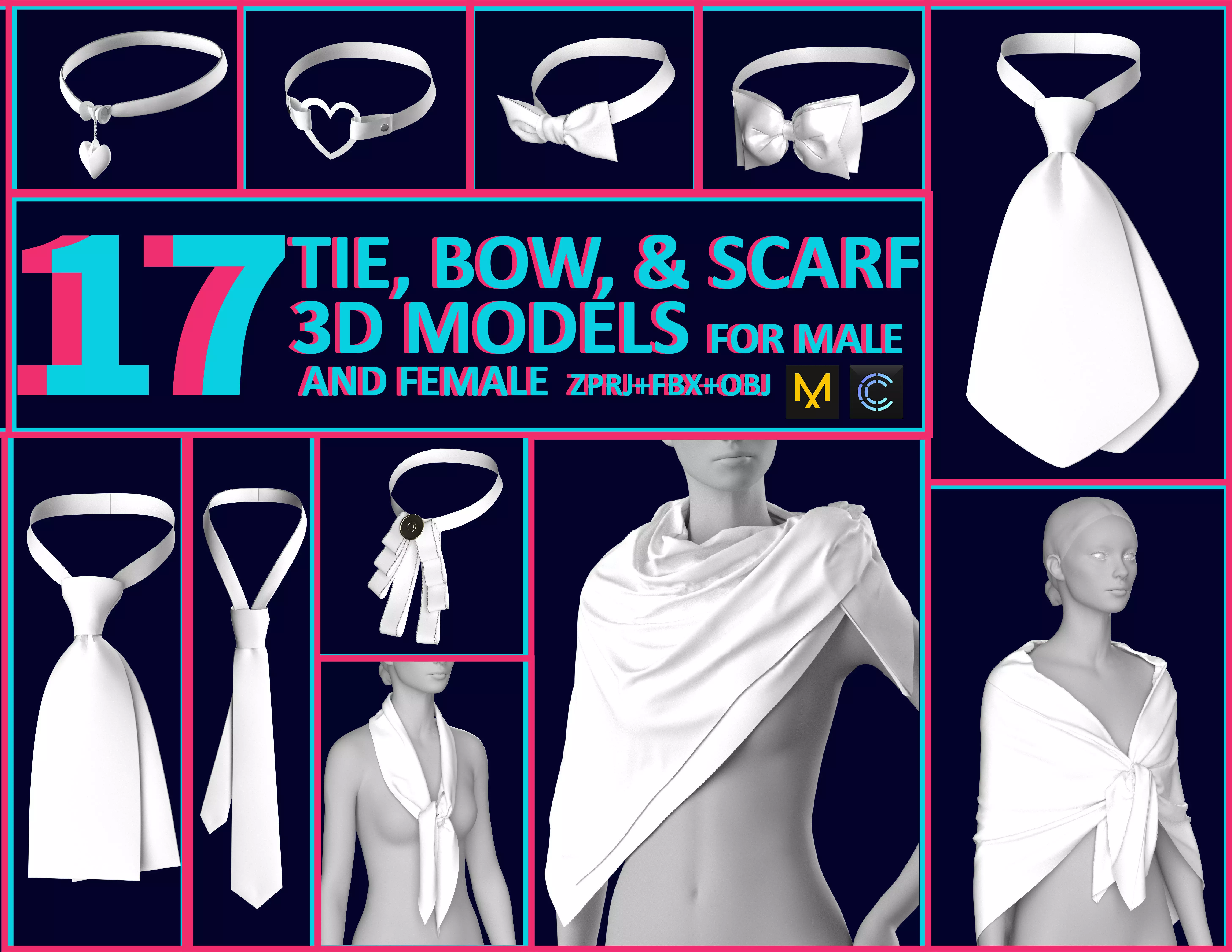 5 NECK SCARF MODELS CREATED IN Marvelous Designer / CLO3D (PROJECT FILES:ZPRJ,OBJ,FBX )(QUAD MESH +UV)3 CHOKER MODELS CREATED IN Marvelous Designer / CLO3D (PROJECT FILES:ZPRJ,OBJ,FBX )(QUAD MESH +UV)5 BOW MODELS CREATED IN Marvelous Designer / CLO3D (PROJECT FILES:ZPRJ,OBJ,FBX )(QUAD MESH +UV)4 NECKTIE MODELS CREATED IN Marvelous Designer / CLO3D (PROJECT FILES:ZPRJ,OBJ,FBX )(QUAD MESH +UV)