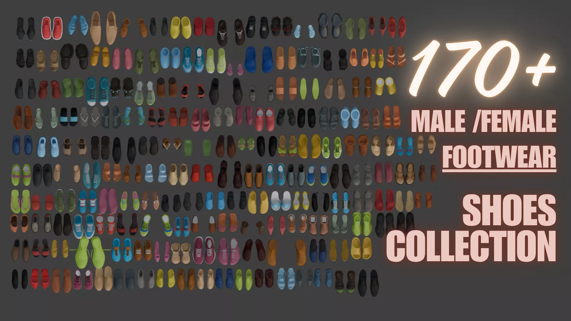170+ Unique Shoe Models Includes: Boots (Casual, Combat, Fantasy, and Stylish) Sneakers (Sporty, Chunky, Retro, Modern) Heels (Classic, High, Stylized) Sandals (Summer, Beach, Gladiator) Slippers, Loafers, Crocs, and More! Clean topology & low-poly game-ready models Fully UV-mapped and Blender-compatible Perfect for rigging, animation, and stylized rendering Categorized with color legend for easy use