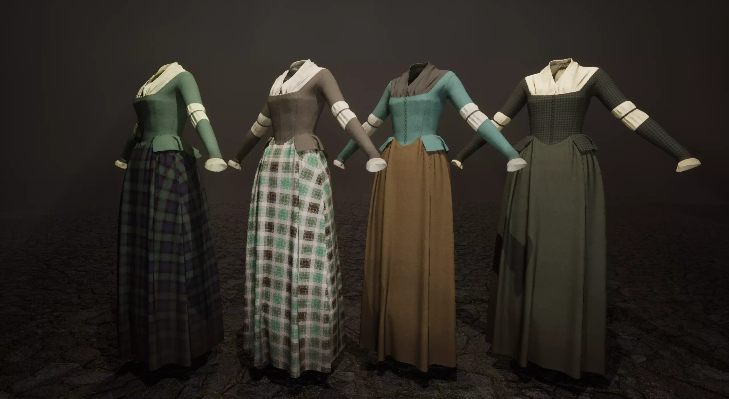 Victorian Scottish Tartan dresses Low-poly 3D model