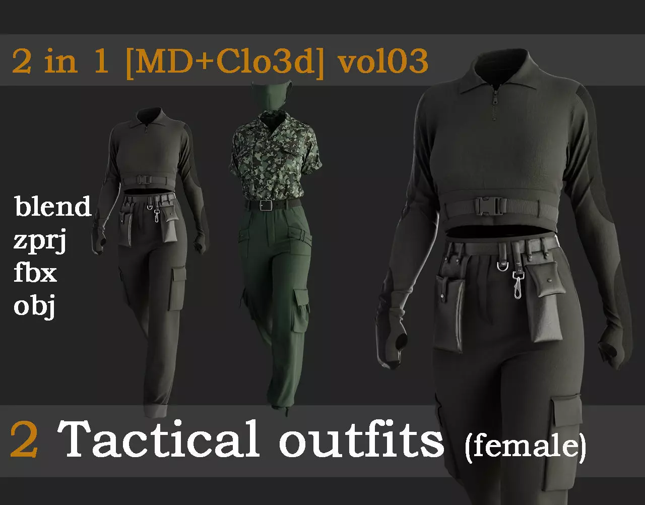 Hello,This product is modeled in Clo3D.Texturing and rendering are done in Blender.Avatar is Daz Studio Genesis 8 Female.Files included: BLEND / FBX / OBJ / ZPRJ / MTL / UV texture / textures (in every folder).ZPRJ, OBJ, FBX: no material, thin / unweld.Clo3D version is 7.3.Blender version is 3.6.4.A-pose is used.Scale of BLEND is in meters.Scale of ZPRJ / FBX / OBJ / MTL is in centimeters.Quad mesh, high poly, no retopology.