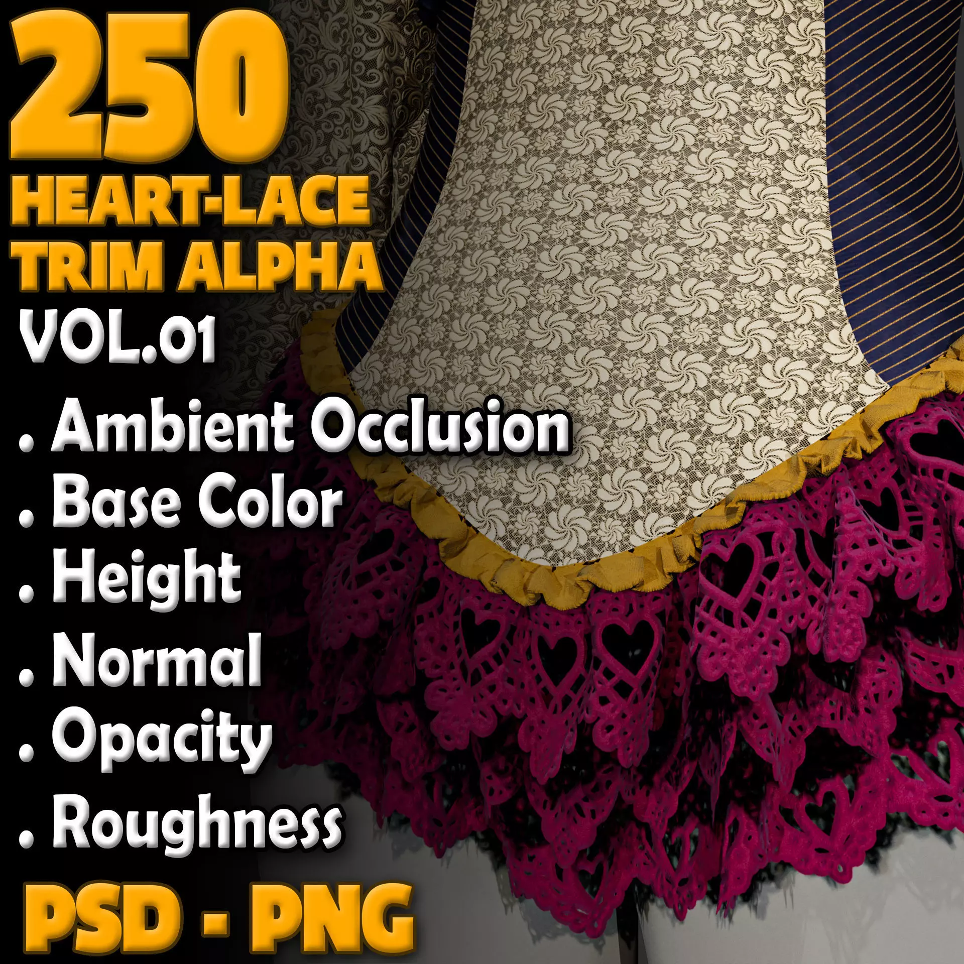 250 Heart-Lace Trim Alpha + Texture + PSD + PNG + High Quality Vol.01