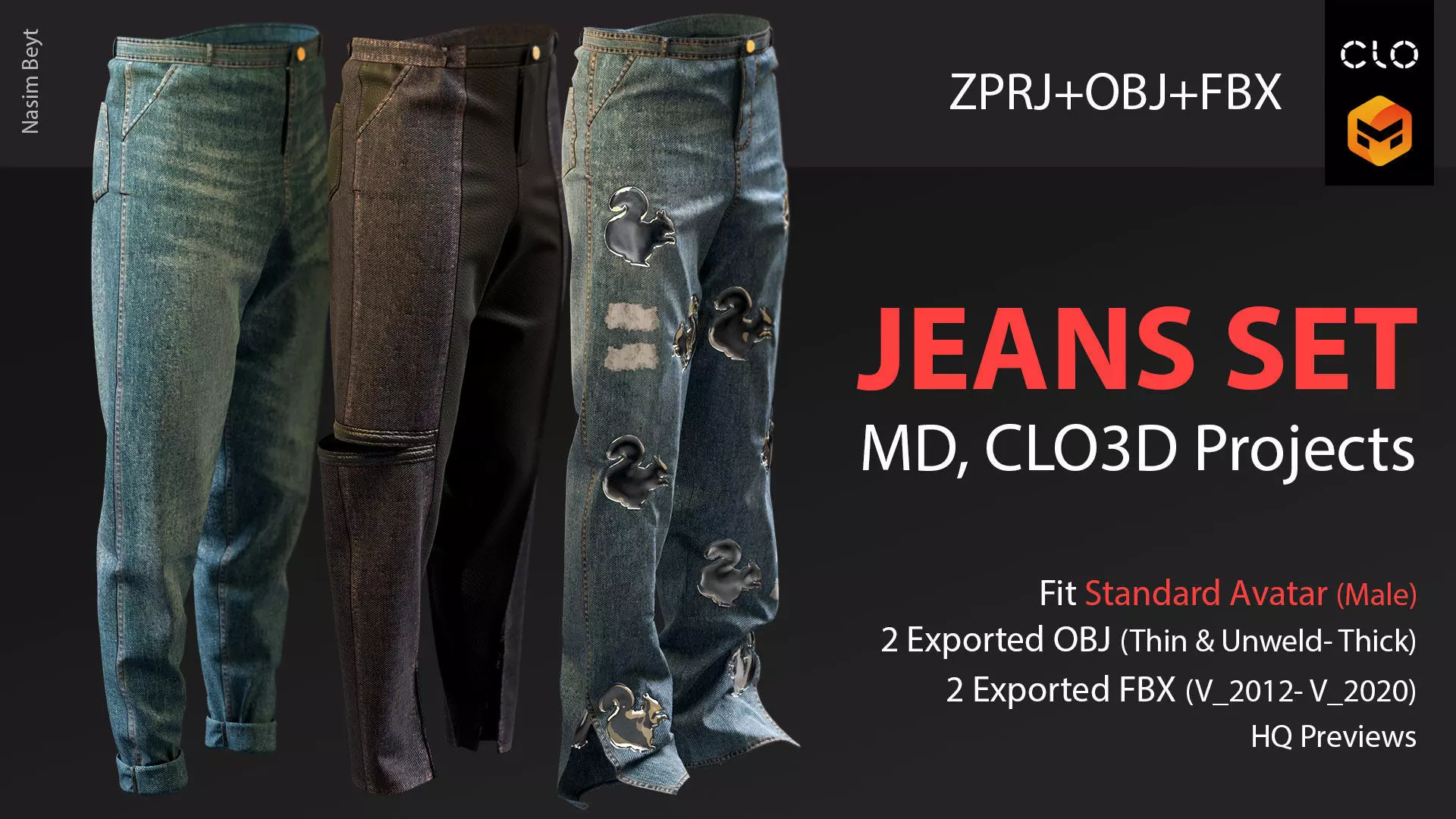 3 Male Jeans Sets VOL 01-MD-Clo3D-OBJ-FBX-Blender file 3D model
