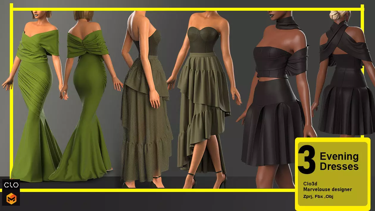 3 in 1 Elegant dresses 3D model