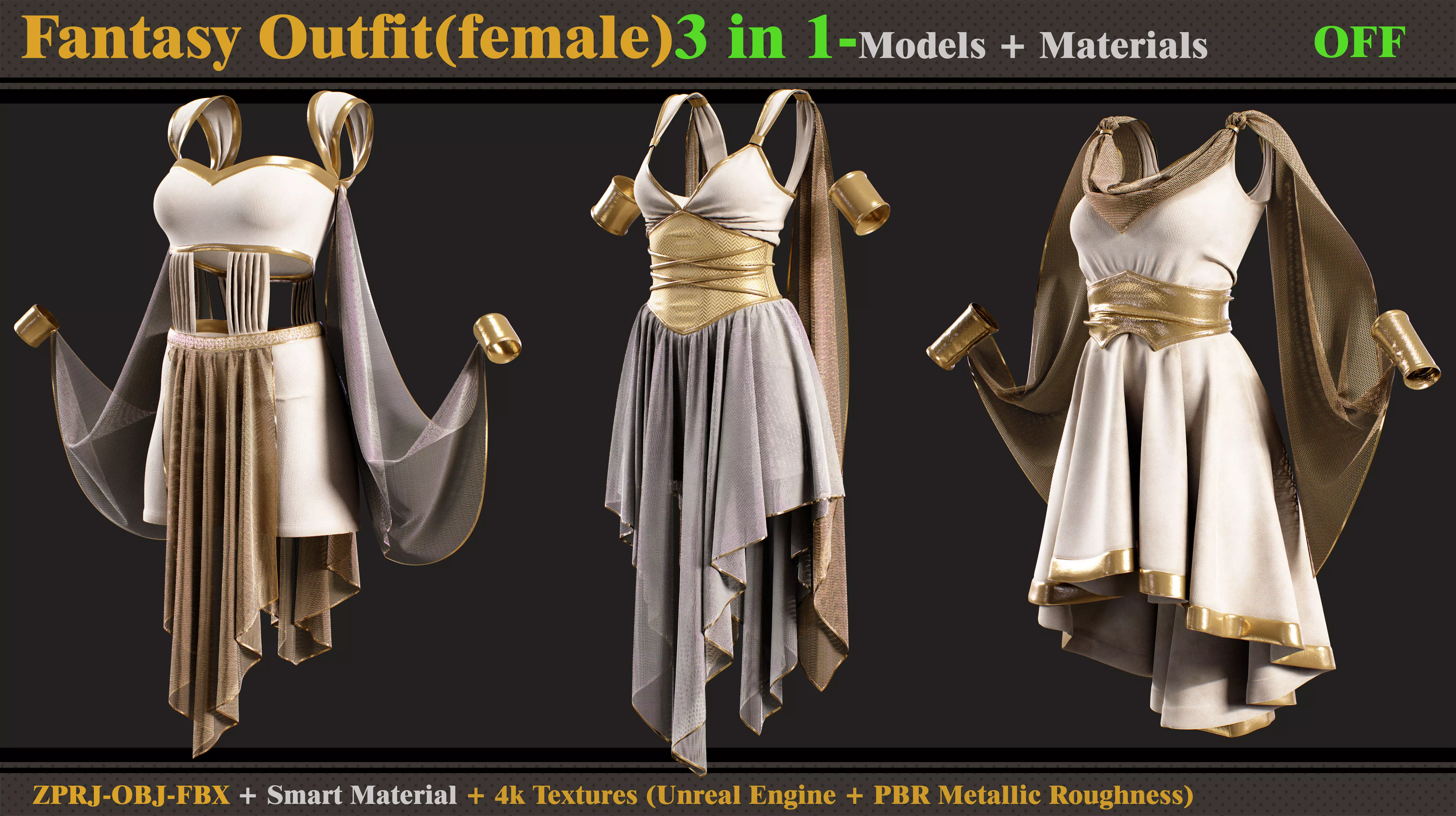 3 in 1 Fantasy Outfits- MD-Clo3d-OBJ- FBX -Materials-Textures 3D model