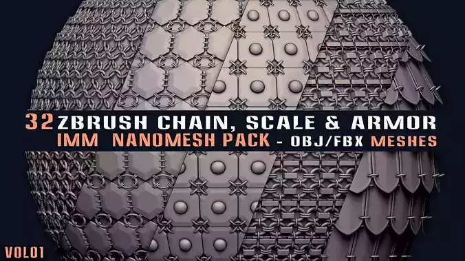 32 ZBrush Chain-Scale-Armor IMM NanoMesh Pack-Vol01 Low-poly 3D model