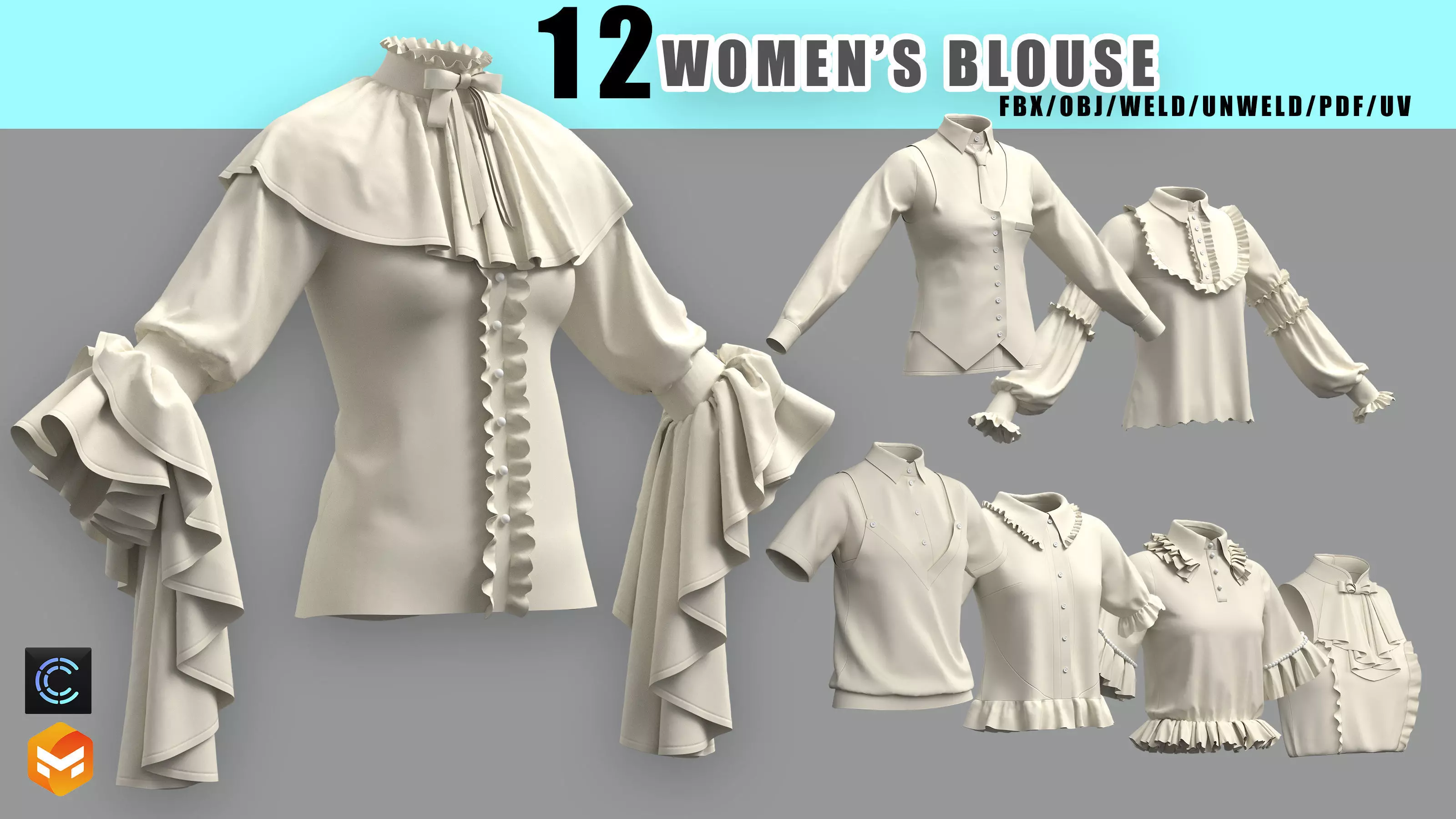 12basic women blouses 3D model