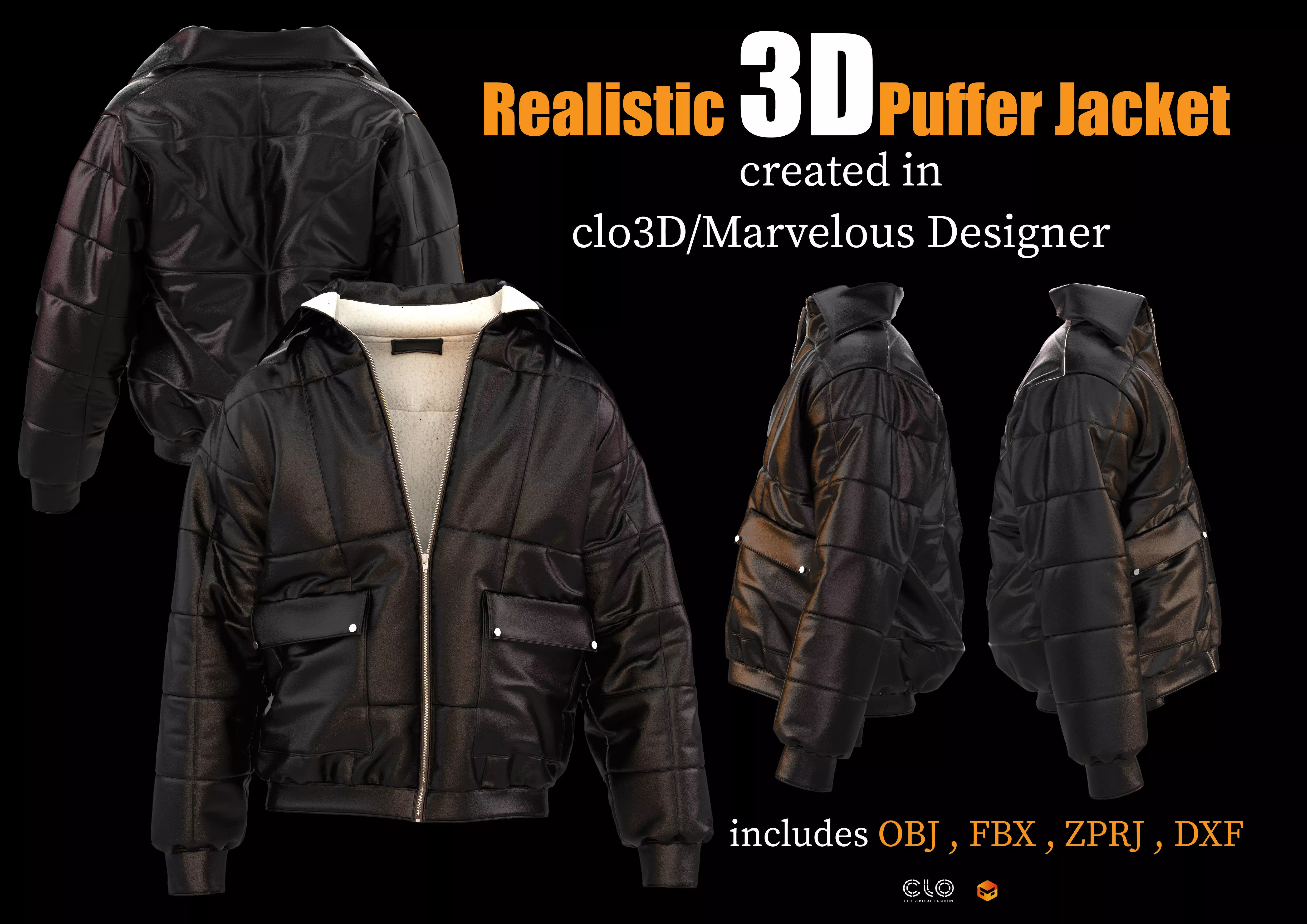 High-quality 3D Puffer Jacket created in CLO3D / Marvelous Designer.This model is designed with realistic stitching, detailed patterns, and clean topology, making it perfect for fashion design, digital clothing collections, animation, and game development.The jacket comes with multiple export formats and is ready for rendering, texturing, and customization. Clean UVs and optimized geometry ensure smooth performance across different 3D applications.