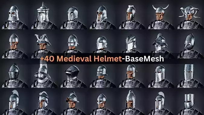 This product includes +40 game-ready low-poly medieval helmet base mesh and can be used in a project with a medieval atmosphere.