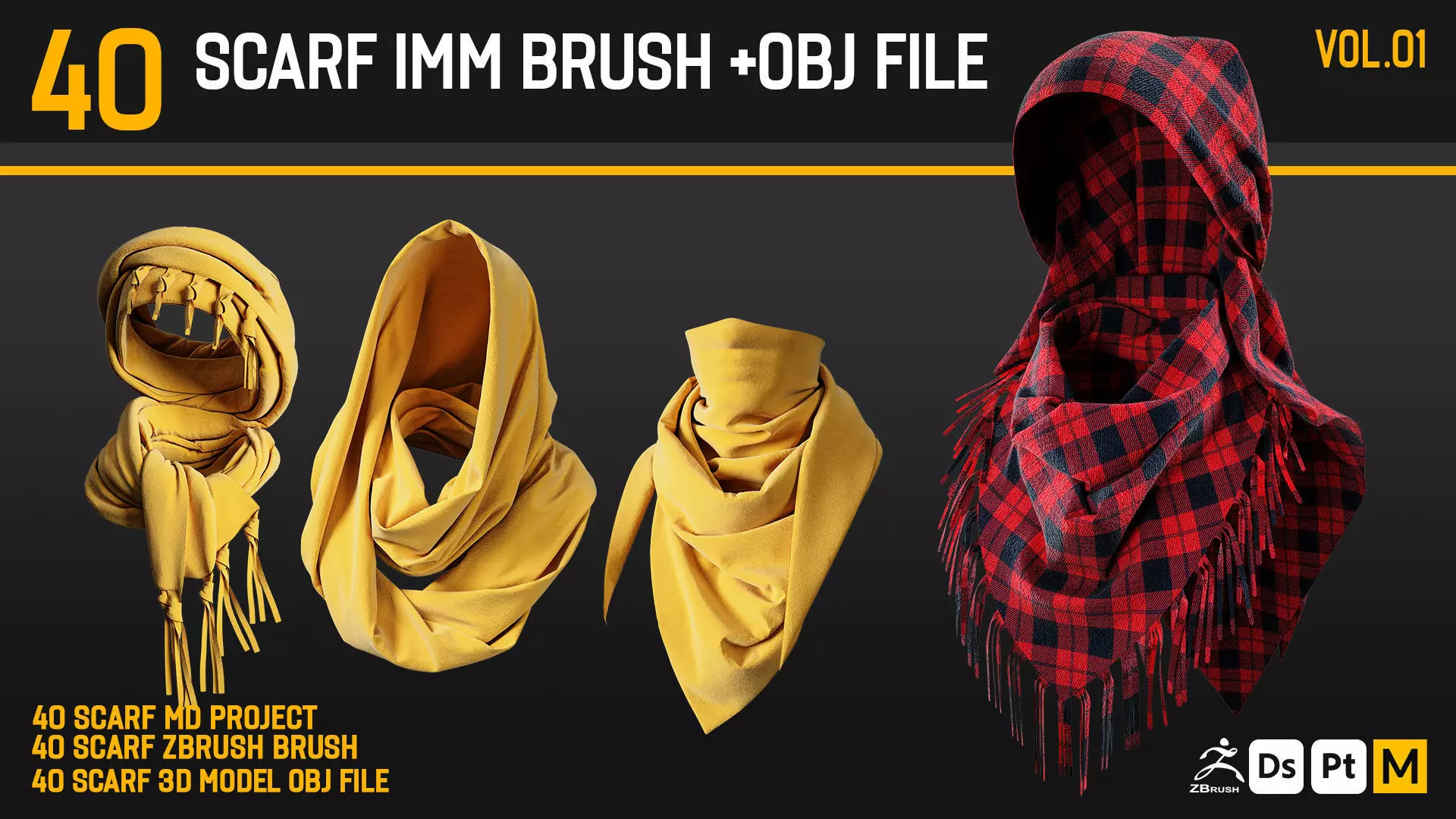 Presenting a collection of 40 unique scarf models crafted to boost your efficiency and precision in 3D modeling. This versatile set is ideal for use in ZBrush, Marvelous Designer, CLO3D, and other major 3D software, making it an essential addition to your design toolkit.