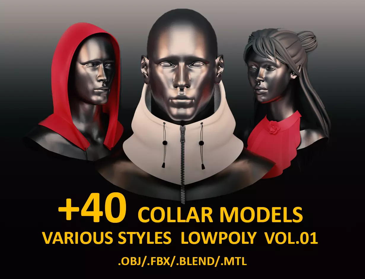Every artist needs a library of suitable models to accelerate the process of creating artworks. This pack includes 43 collar models in various styles for men and women.this pack is lowpoly with clear meshes and you can have super-lowpoly models and in some cases have mid steps too. super-lowpoly models are useful to customize your collars. These collars can use easily to make your clothes faster.