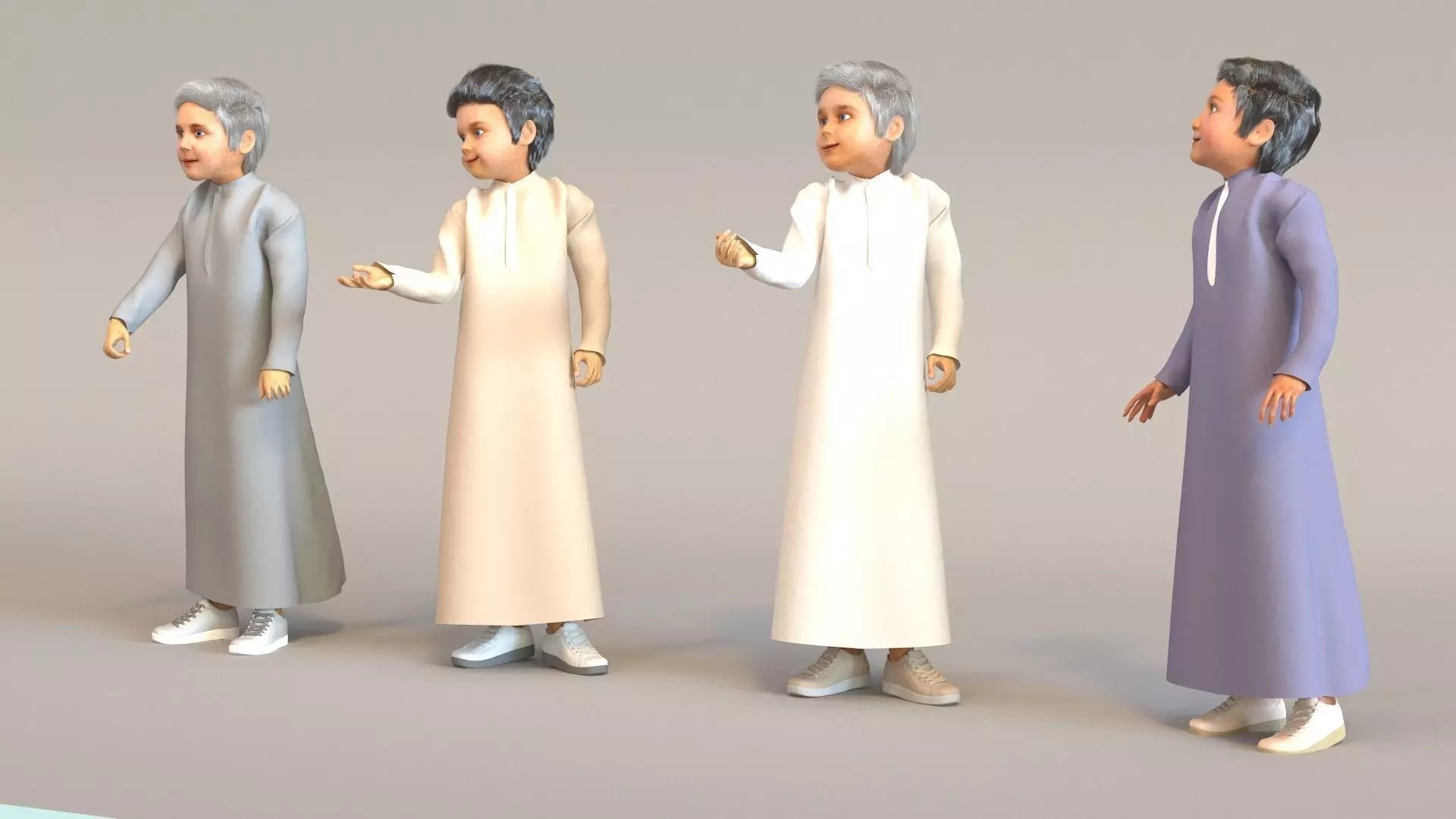 4 x Arabian animated boys, real cloth simulation.