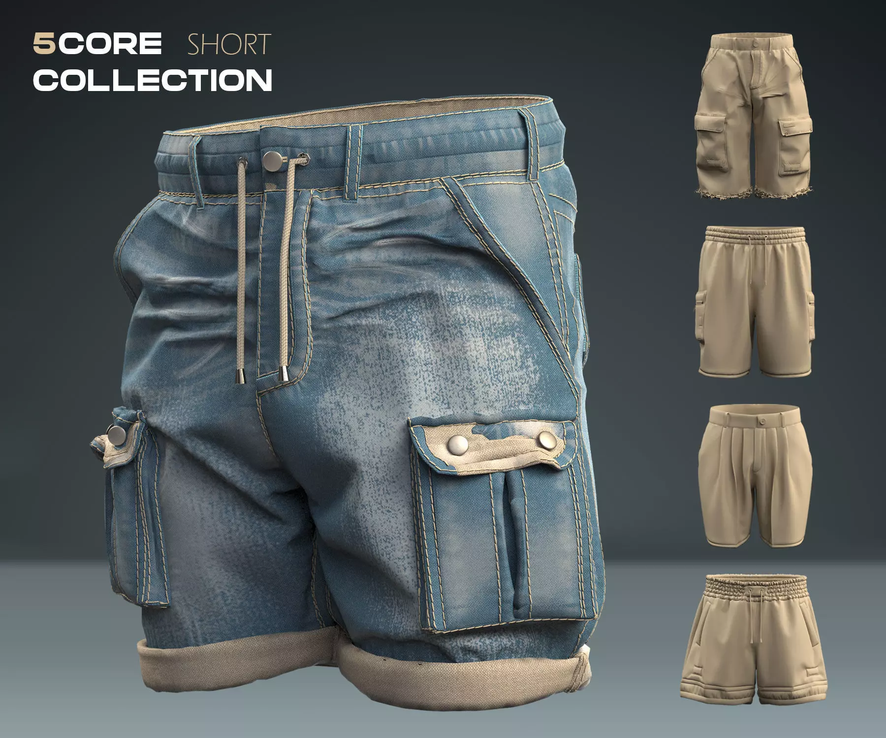 Explore a versatile collection of 5 high-quality shorts, perfect for modern fashion designs or game-ready characters.