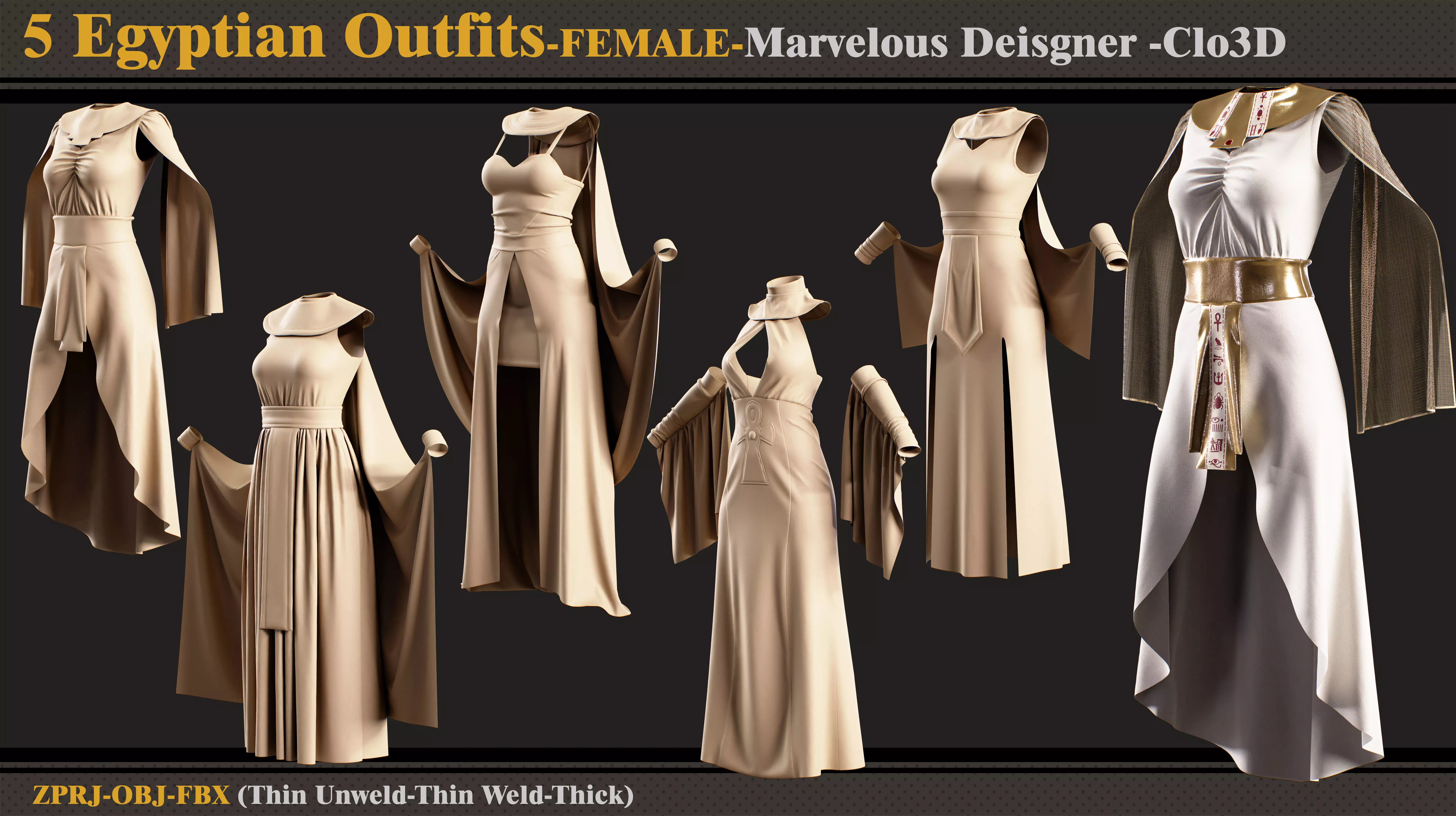 5 Egyptian Outfit-MD-Clo3d-ZPRJ-OBJ- FBX 3D model