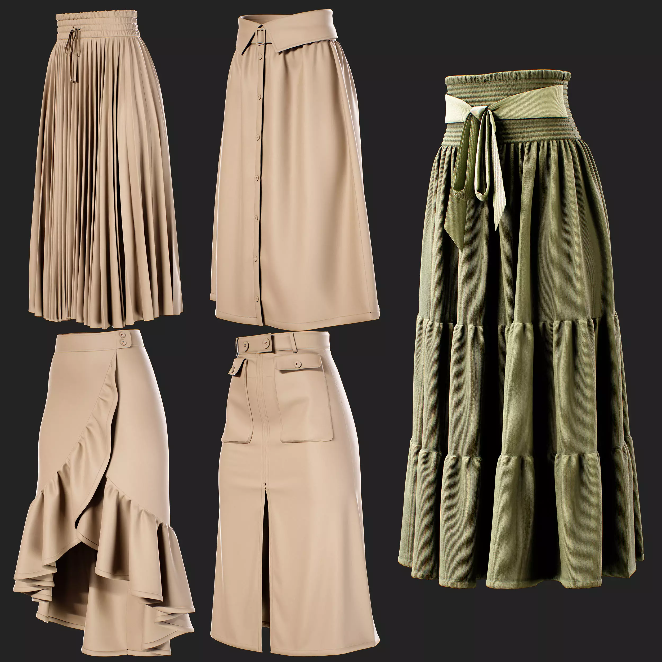 5 Long Skirt -MDClo3D -ZPRJ - FBX - OBJ 3D model
