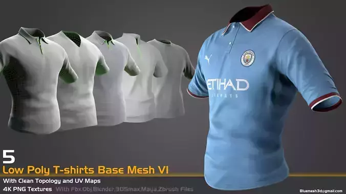 Hi everyone.I am happy to share with you the first set of low poly T-shirt models that I recently made.In this collection, all my efforts have been to consider the best quality and the low poly and to be close to reality.This collection includes 5 low poly T-shirts with clean topology and UV map. With 4k PNG textures.The textures are for display, you can use them or create your own textures.You can use the normal maps in your work.This collection has been modeled and optimized for all purposes of animation, games, shows, etc.You can use these files in all software such as Unreal Engine and...Various FBX, OBJ, Maya, 3dsMax, Blender, and Zbrush files are included in this collection. The grouping of each T-shirt is done in Zbrush software and you can easily export those groups.You make me happy by leaving comments and likes. thank you