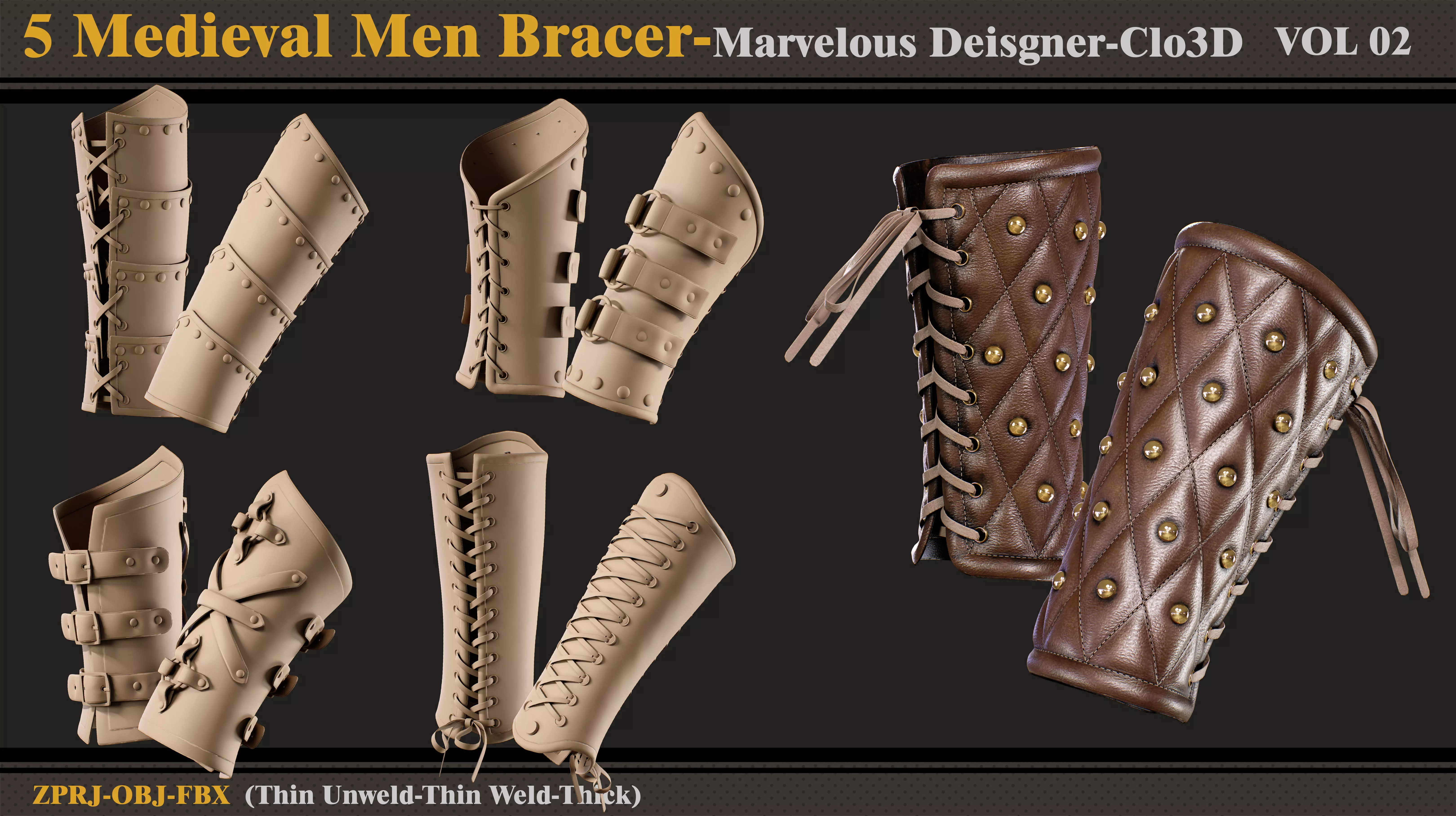 5 Medieval Men Bracers-MD-Clo3D- FBX -OBJ 3D model