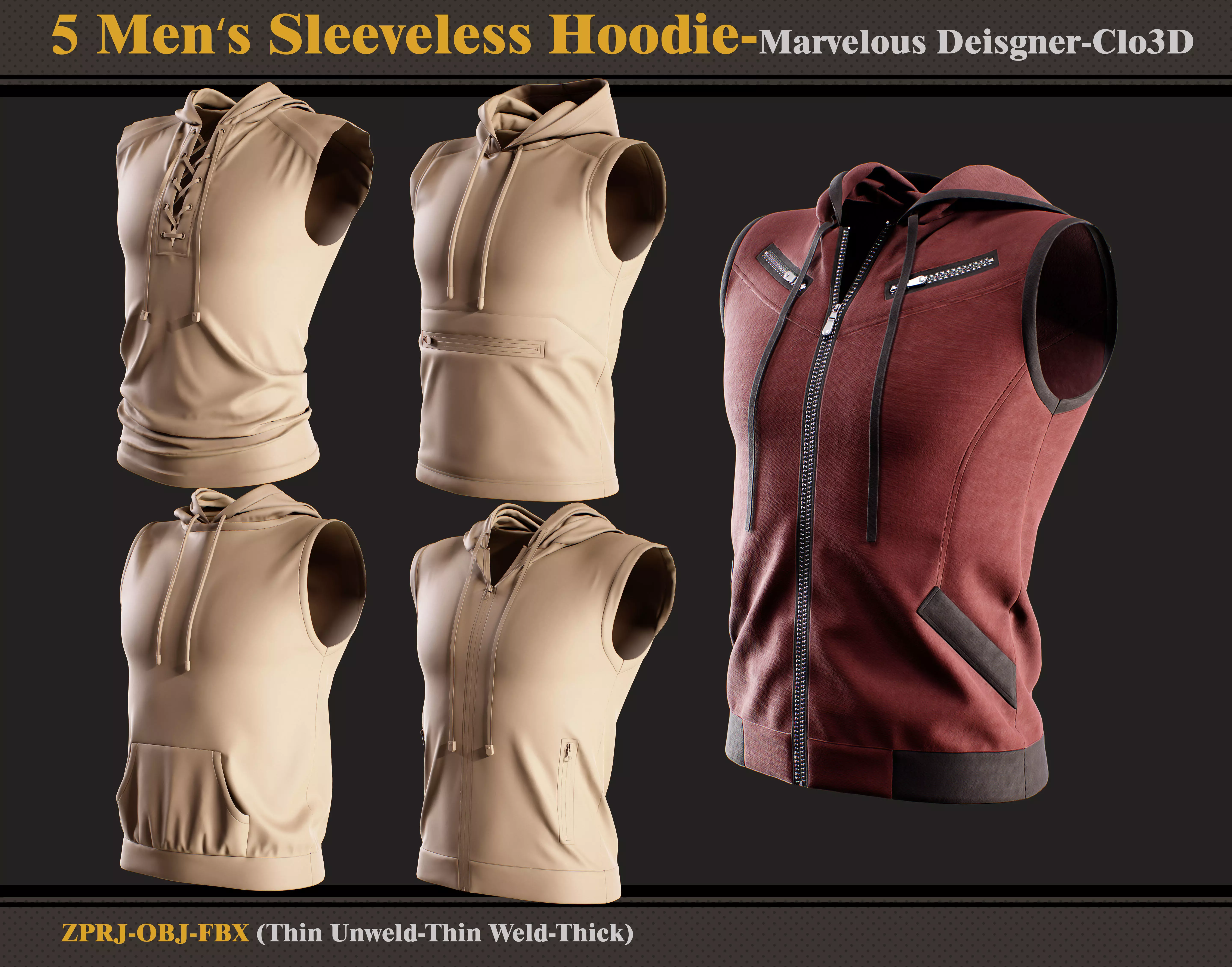 5 Men Sleeveless Hoodie-Marvelouse Designer-Clo3D-fbx-obj 3D model