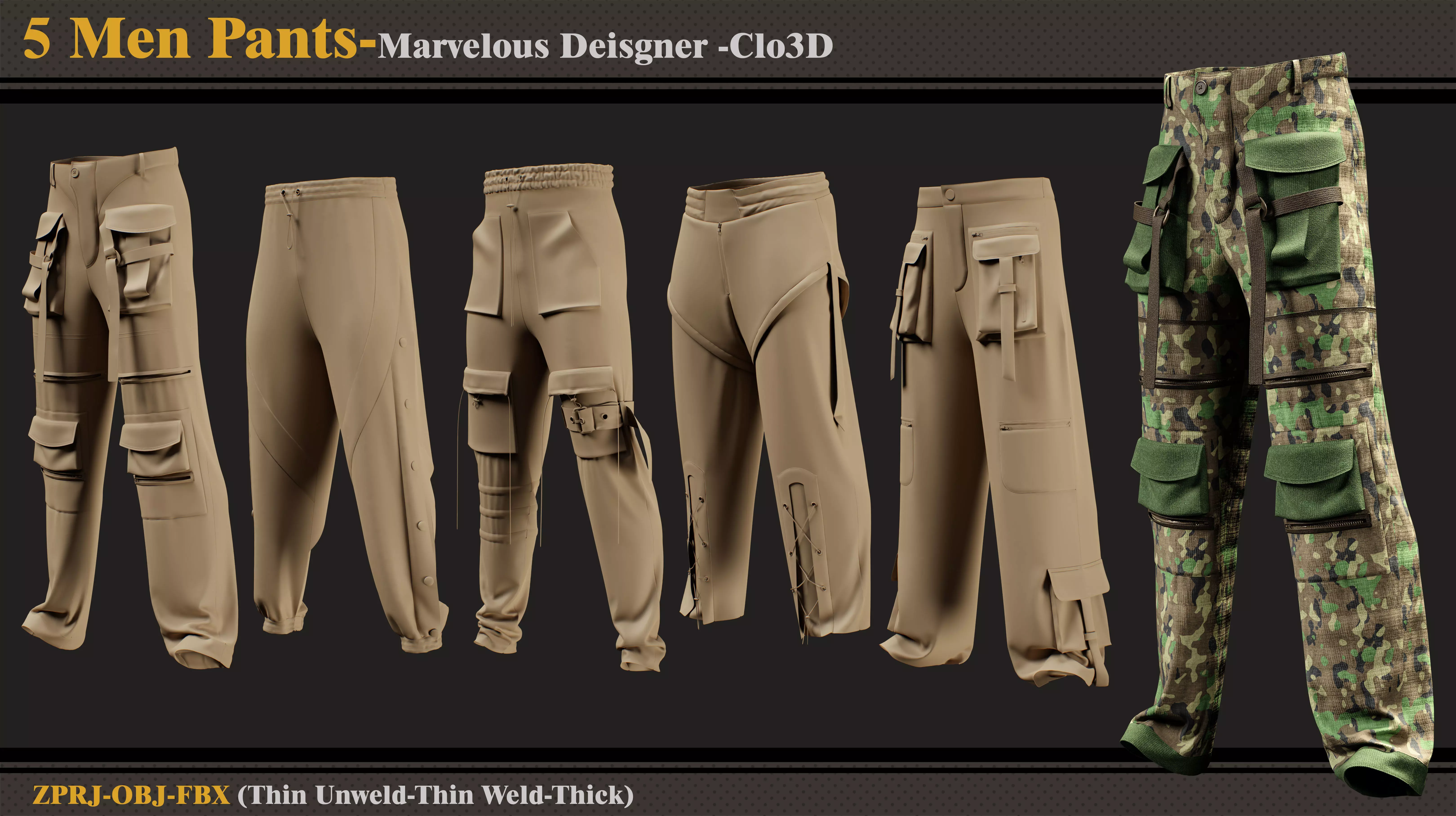 5 Mens Pants -MD-Clo3D-ZPRJ- FBX-OBJ 3D model
