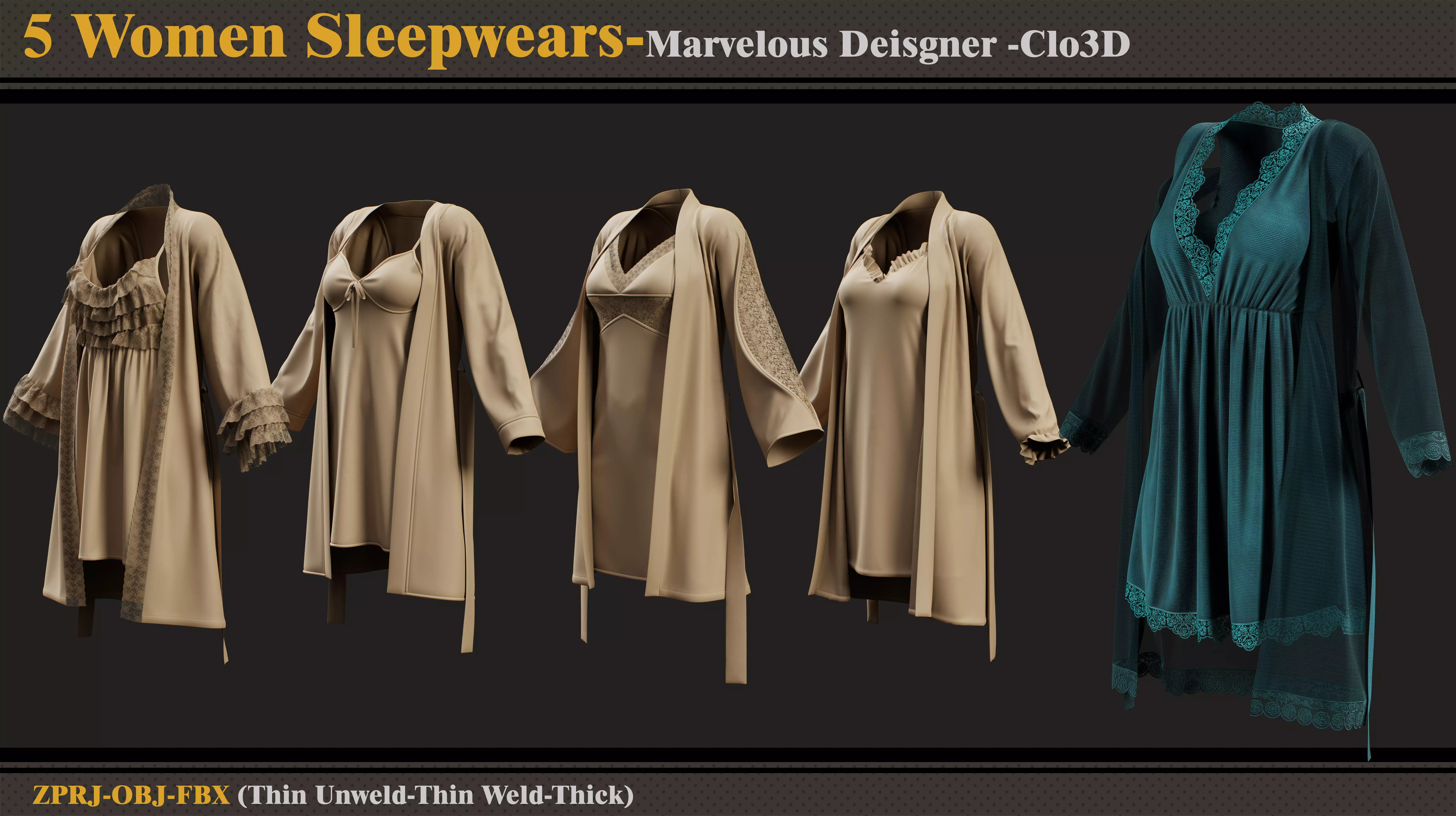 5 Women Sleepwear-MD-Clo3D-ZPRJ-FBX - OBJ 3D model