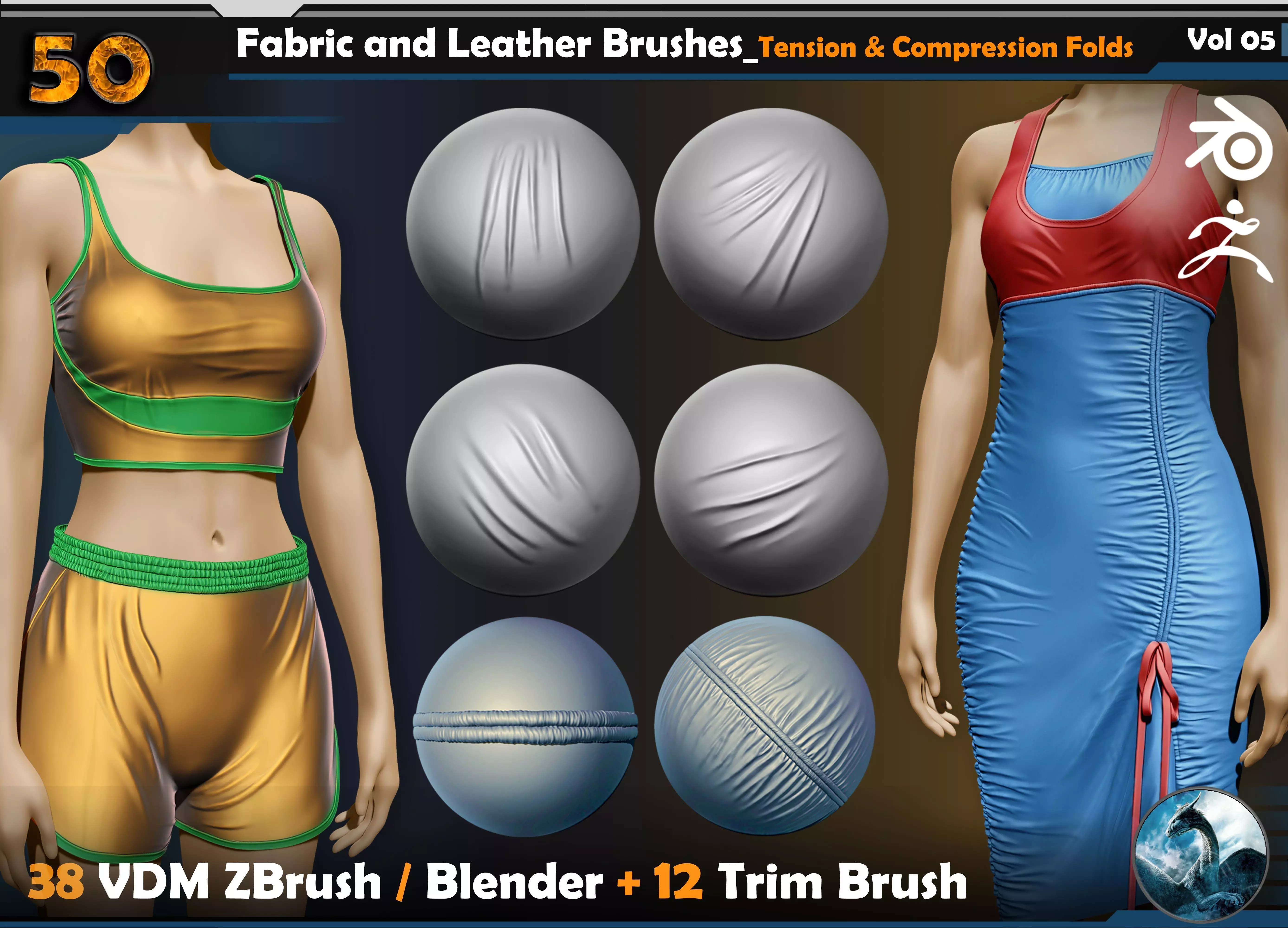 This Product include 50 Fabric and Leather VDM Brushes Vol 05Suitable for using 3D software (Zbrush _ Substance Painter& Designer _ blender , ... )