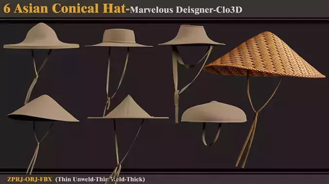 6 Asian Conical Hat-MD-Clo3D-ZPRJ-FBX-OBJ 3D model