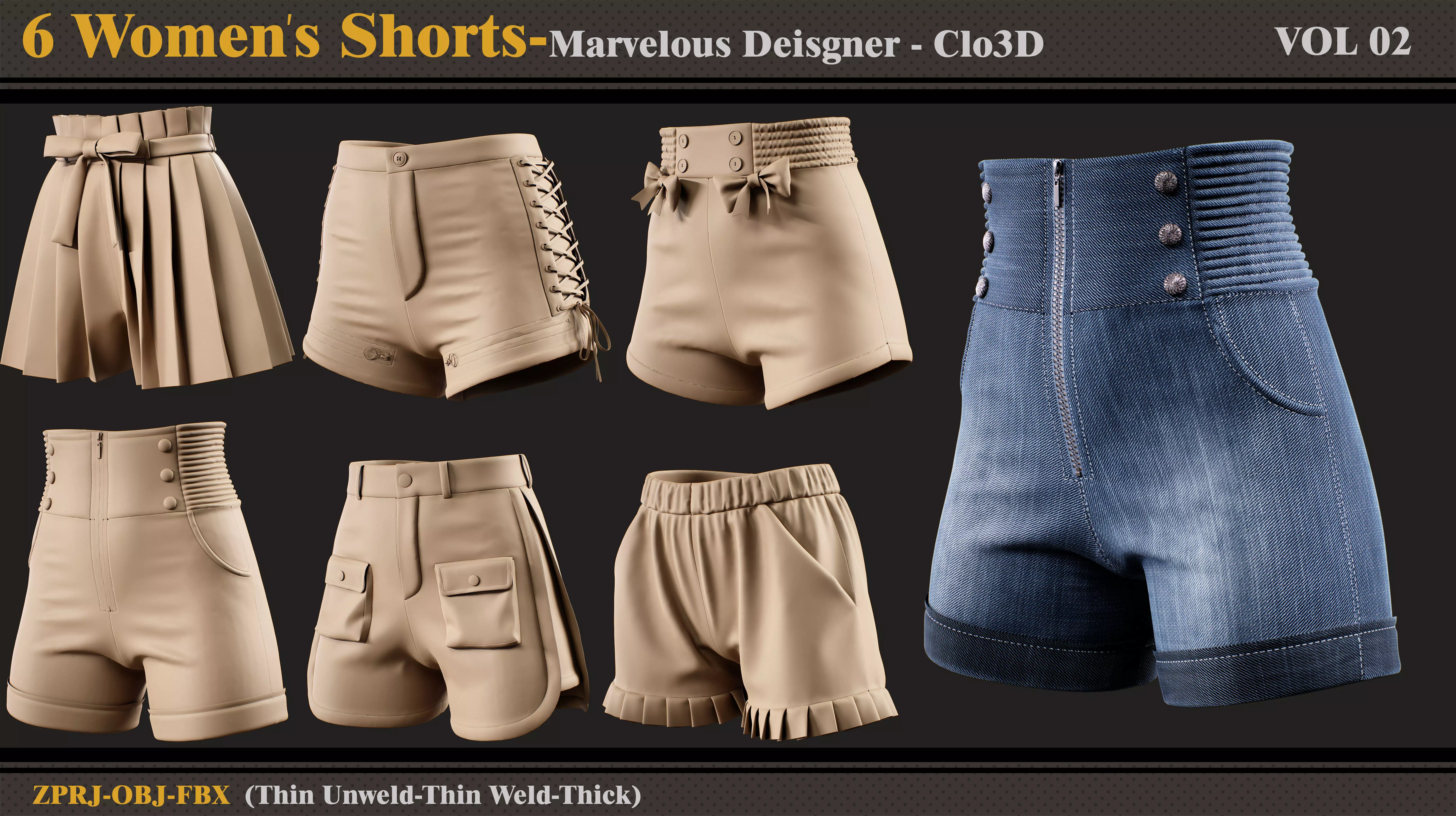6 Women Shorts-MD-Clo3D-ZPRJ - FBX - OBJ 3D model