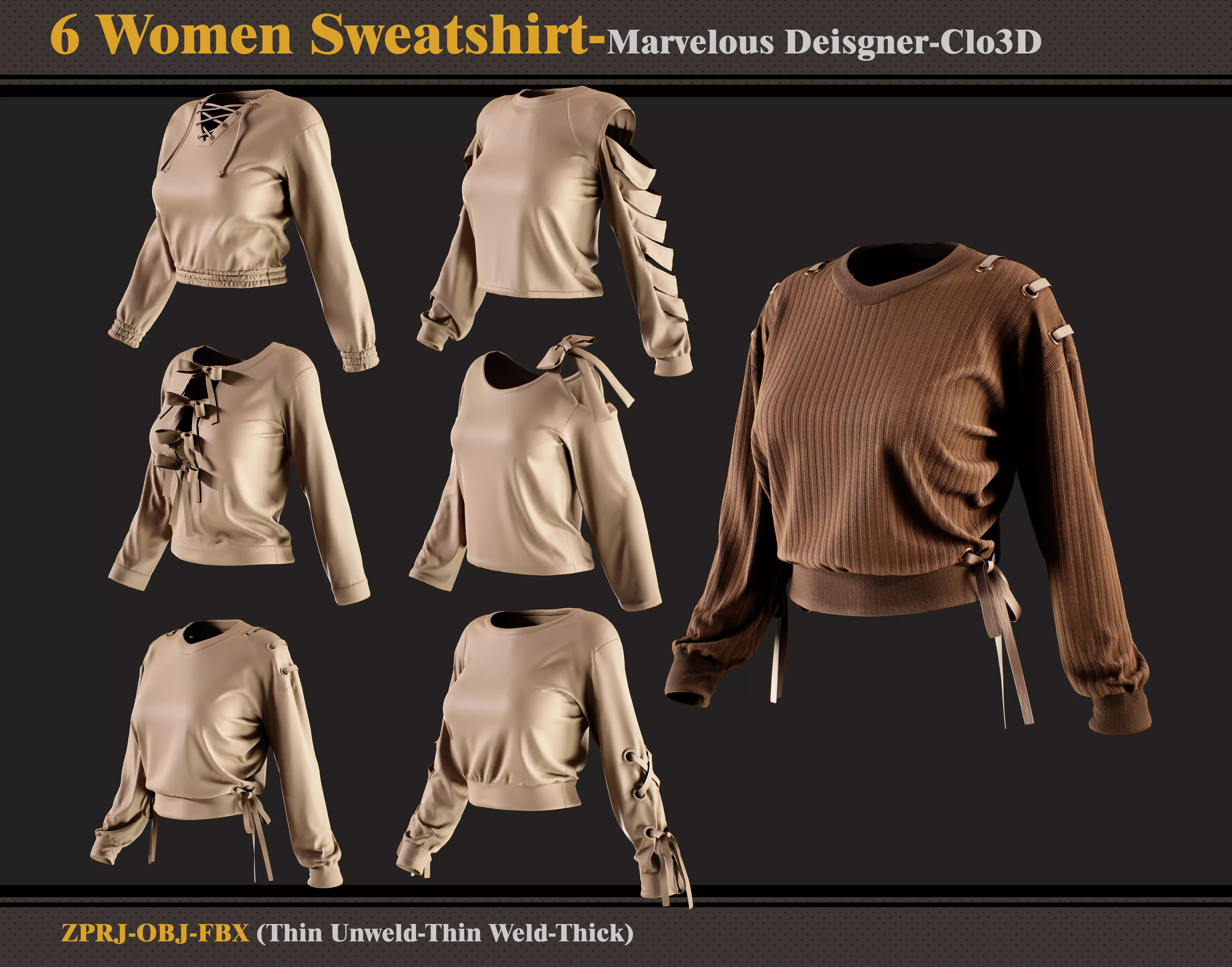 6 Women Sweatshirt -MD-Clo3D -ZPRJ - FBX - OBJ 3D model
