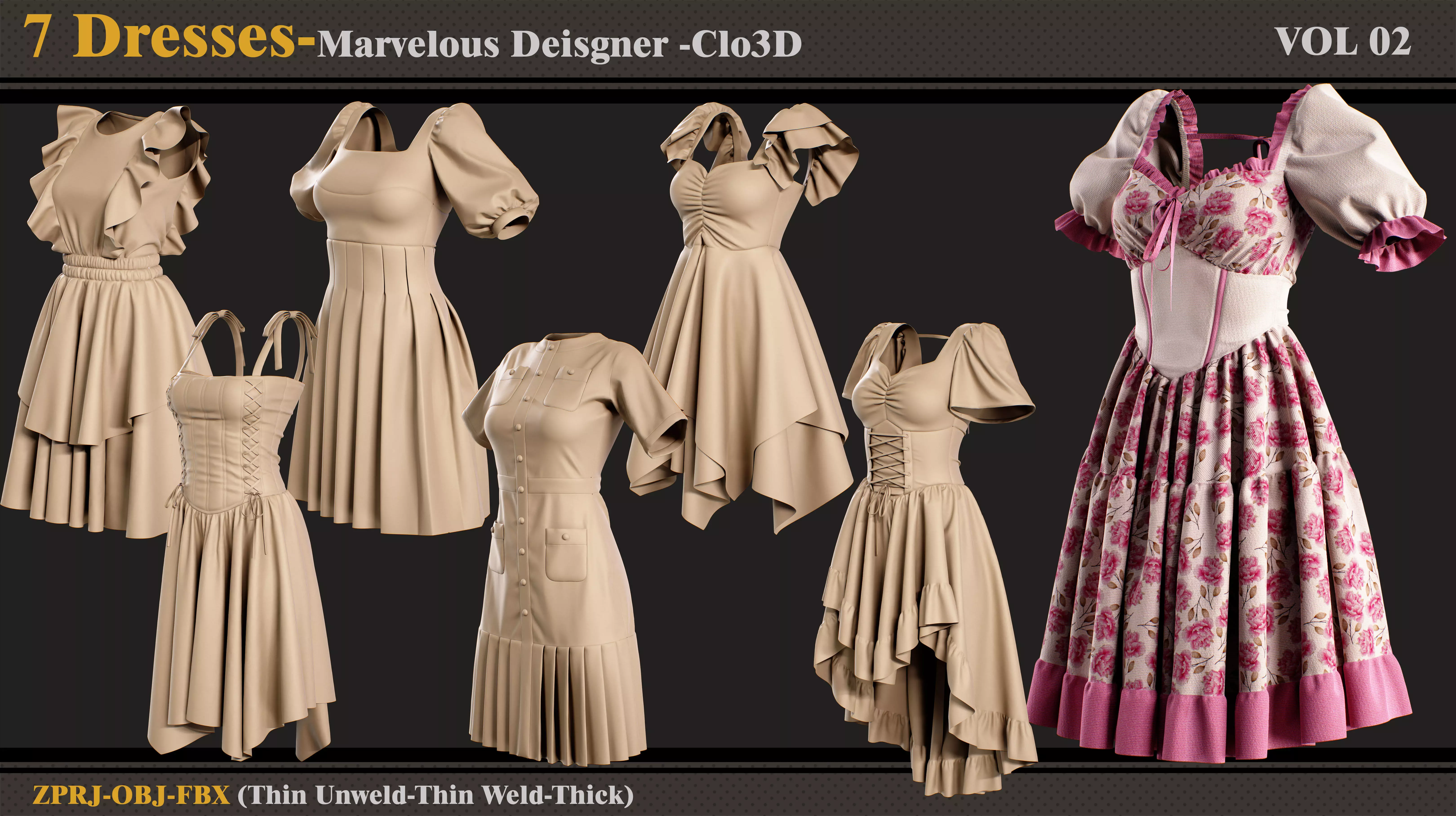 7 Dresses-MD-Clo3D -ZPRJ- FBX-OBJ 3D model