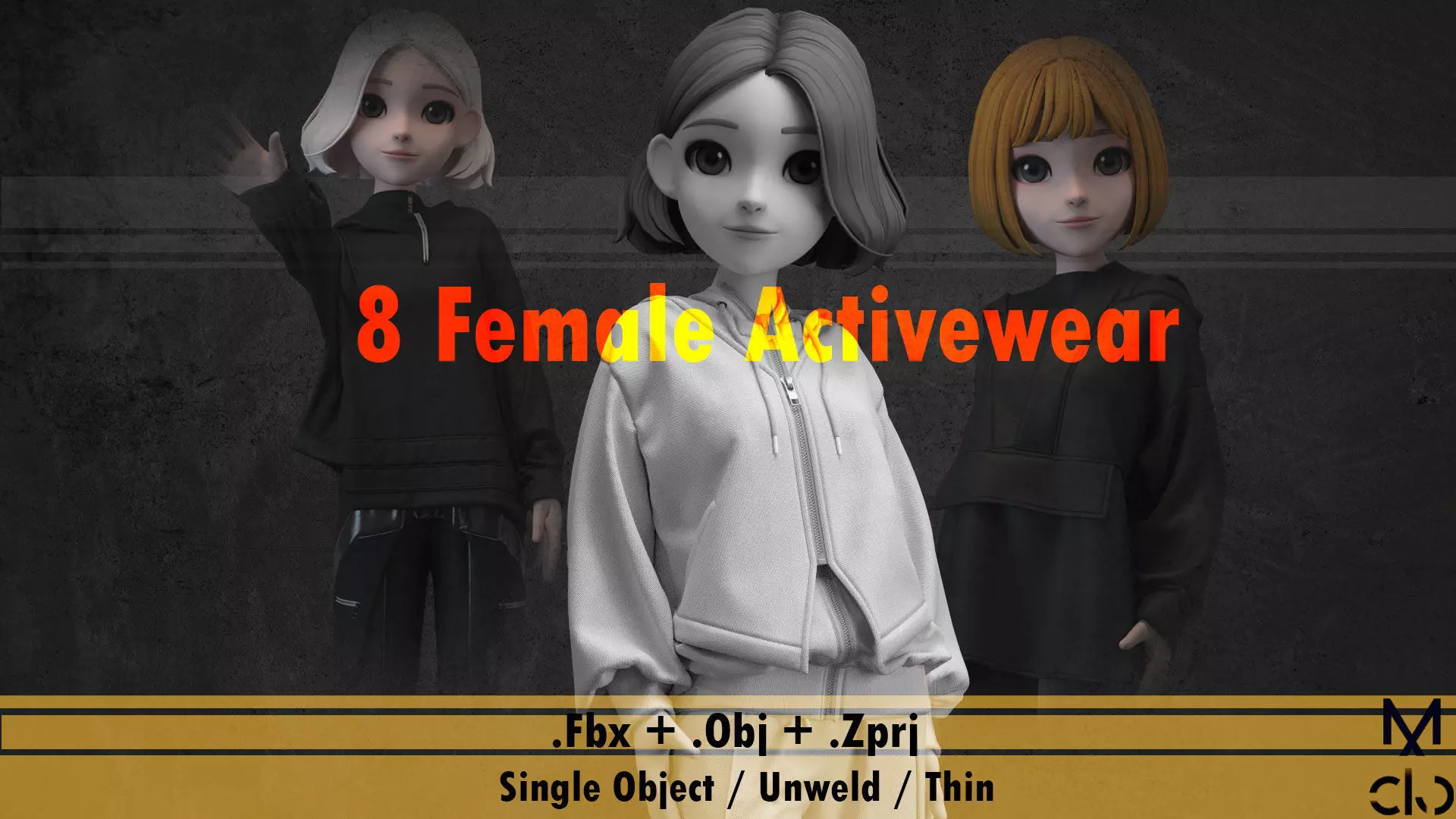 This pack includes 8 different models of women active-wear in 3 formats :
