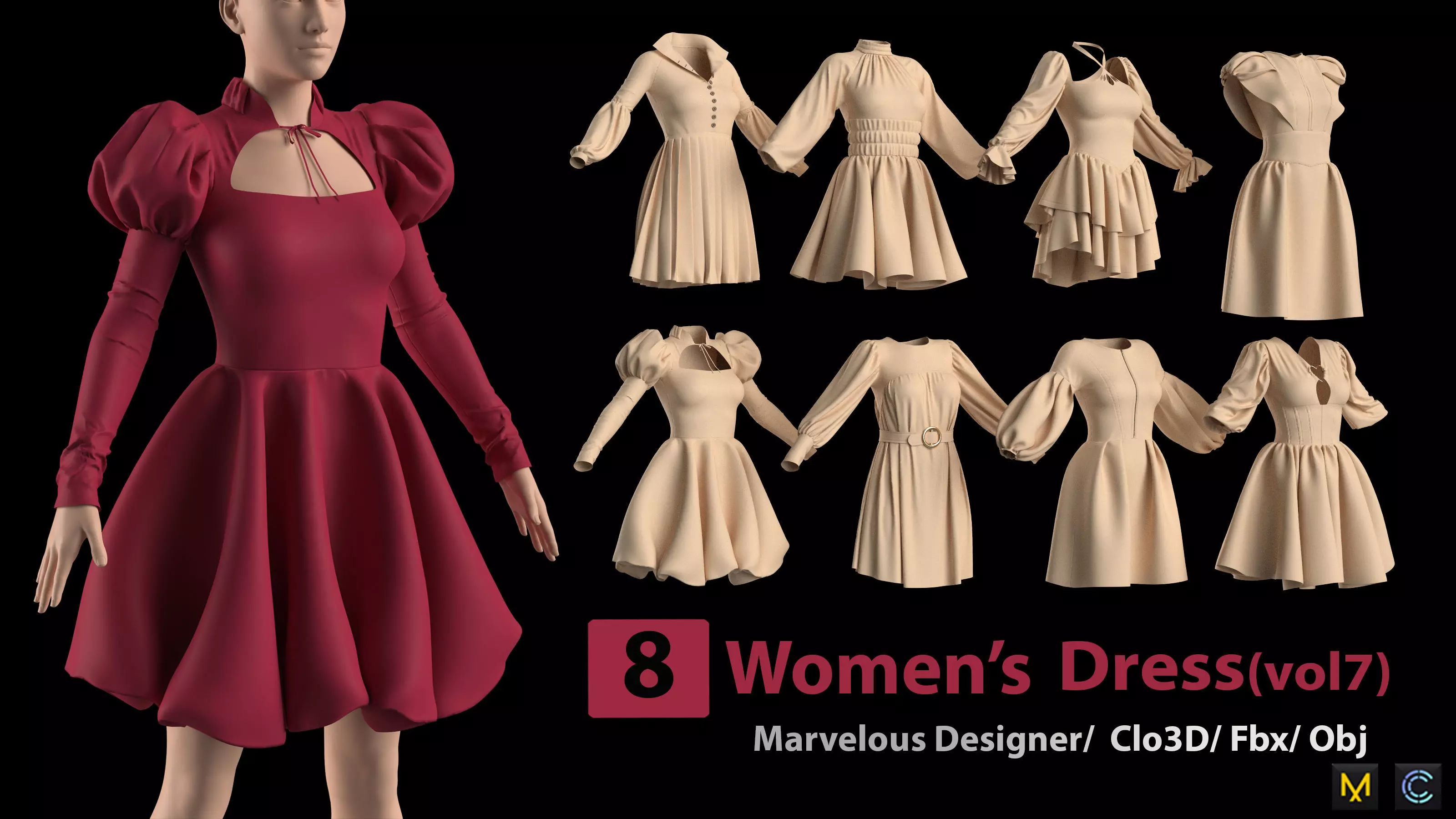 These models of women's dress created and quad and render in clo3d(7.3) software