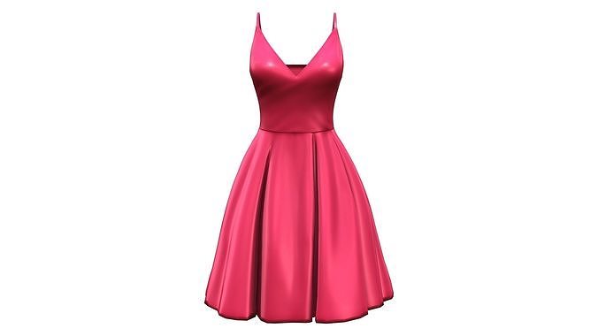 A-Line V-Neck Knee Length Satin Dress Low-poly 3D model