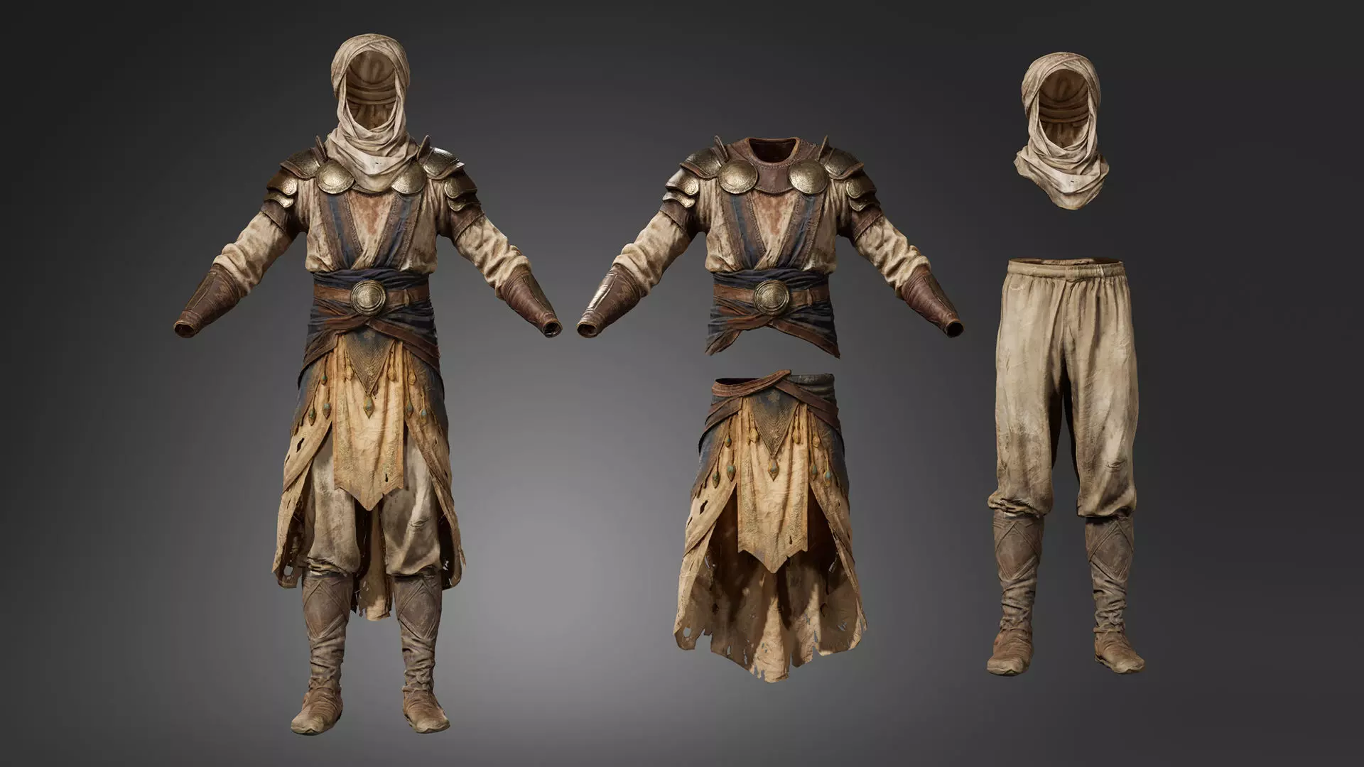 This set is ideal for desert warriors, nomads, travelers, merchants, or RPG characters, and works well in fantasy worlds, desert environments, historical scenes, or cinematic projects.