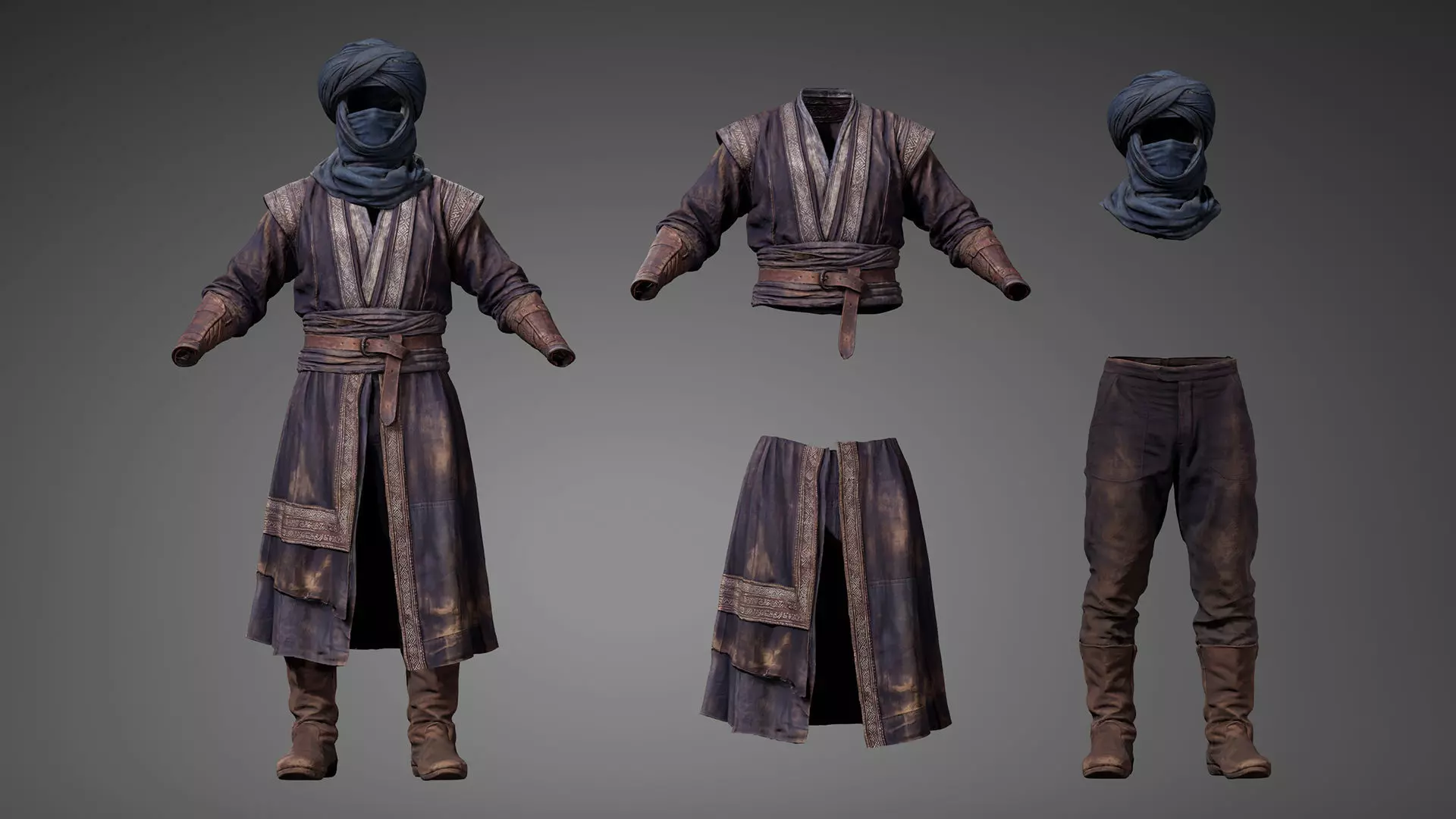 This set works well for nomads, desert travelers, merchants, scouts, or RPG characters, and fits naturally into desert environments, fantasy worlds, historical scenes, and cinematic projects.