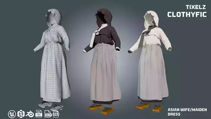 asian trad wife dress - clothyfic outfit Low-poly 3D model