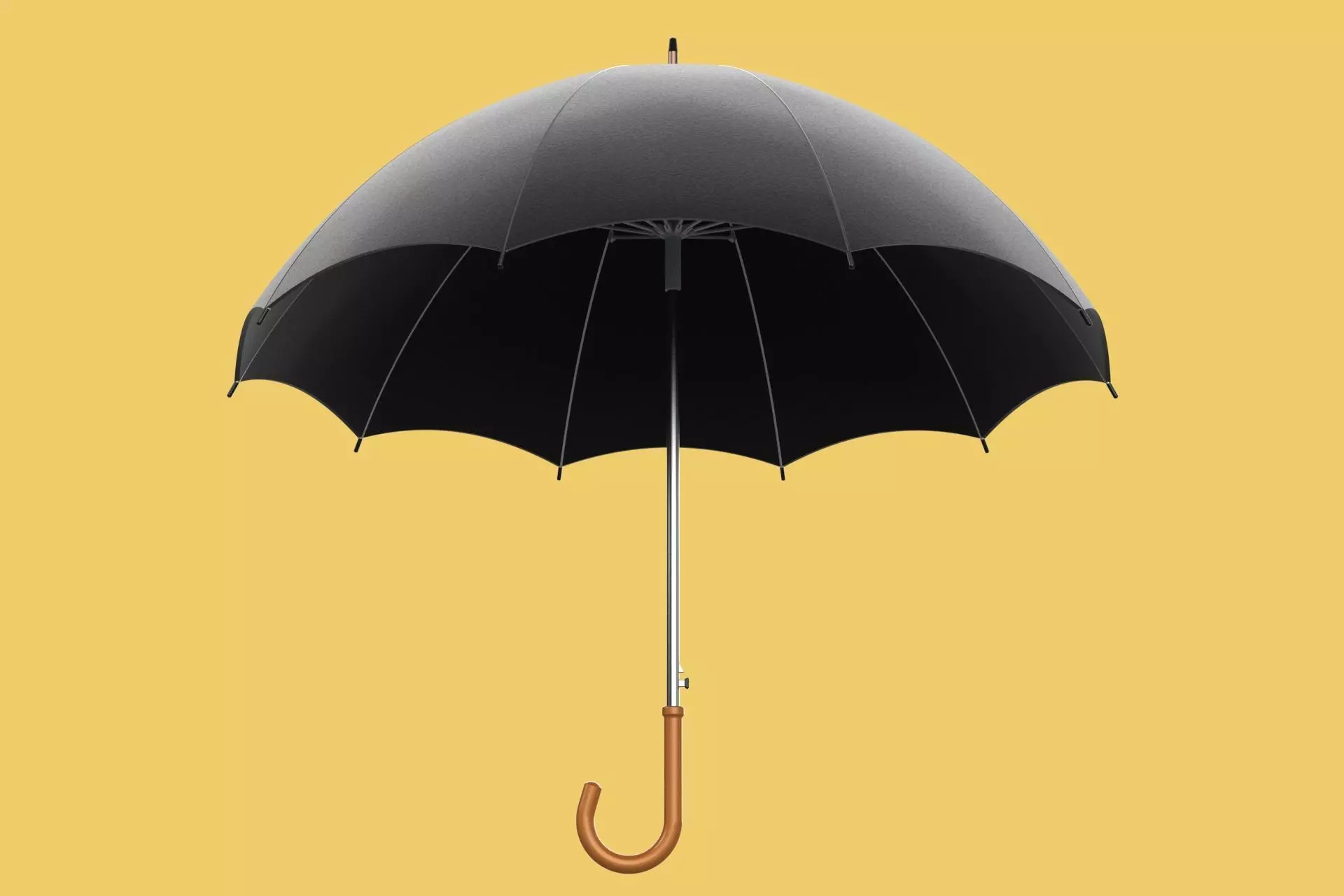 A stylish and functional umbrella with a sleek black canopy and a classic wooden J-stick handle. The automatic open mechanism provides quick and easy deployment.Creative: