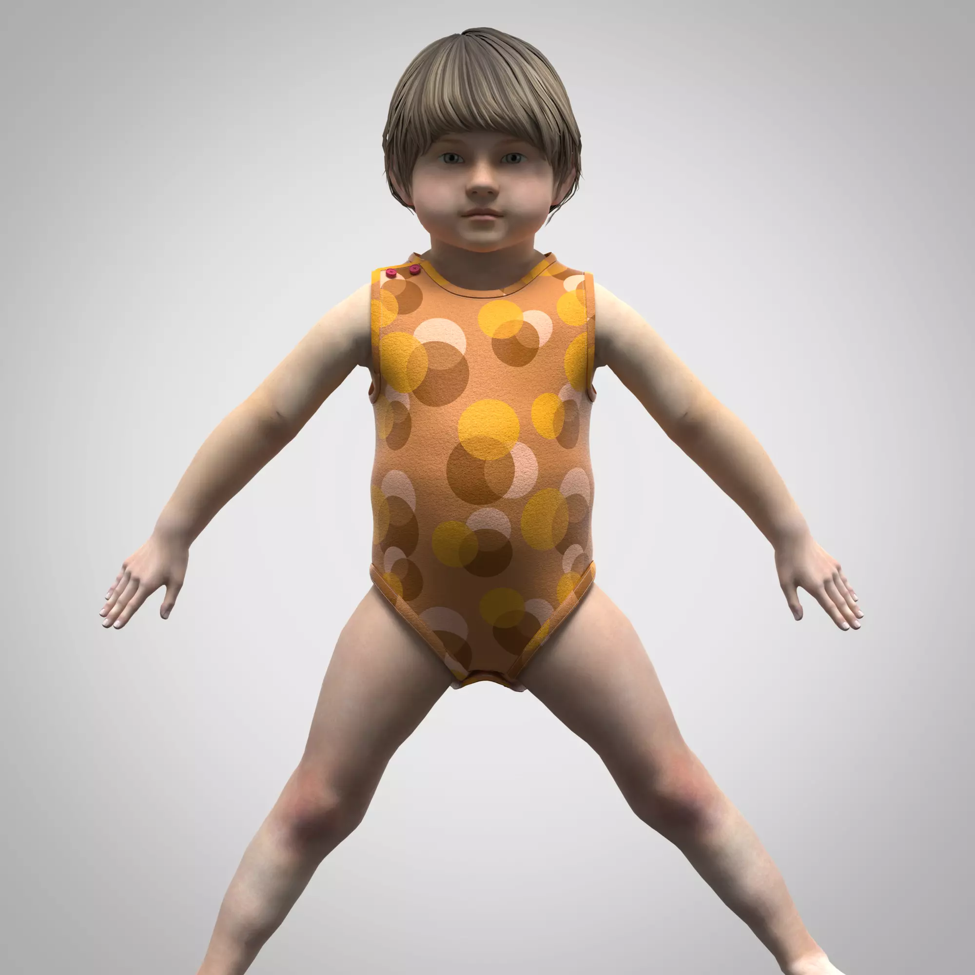 Baby Onesie . Very High Quality Rendered. Made By Clo Standalone. This model has a low polycount . Includes various formats with realistic Wash effect textures and normal map. With Exotic texture you will see the effect on the body.** 2d CAD also provided. Ready Pattern for make actual product.** It can be used for animations, video games, WebGL, VR/AR, VFX, Obj, Presentation. Provided File Formats are Dxf, OBJ, FBX, Zprj, AI, Gltf, xml, mcx . Let me know if any support required in comment box.
