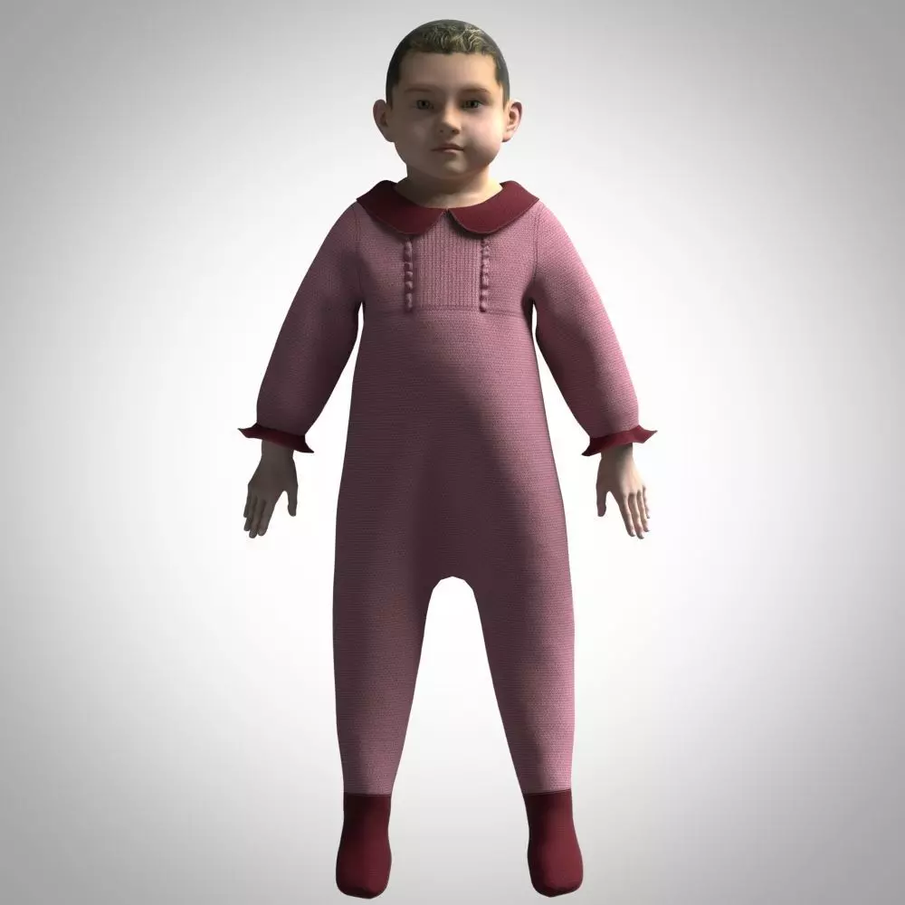 This high-quality 3D model of a baby Onesie romper is ideal for use in digital fashion showcases, animations, gaming, virtual fitting rooms, or fashion prototyping. The model is rigged and optimized with a low polycount, making it suitable for real-time applications. Key Features: Rigged 3D model – Ready for animation and character fitting Low polycount – Optimized for fast rendering and game engines Realistic wash-effect textures – Includes exotic surface details. Normal maps – For enhanced depth and realism 2D CAD Pattern included – Perfect for actual garment production. Printable sewing pattern – Based on production standards. Made with Clo Standalone.