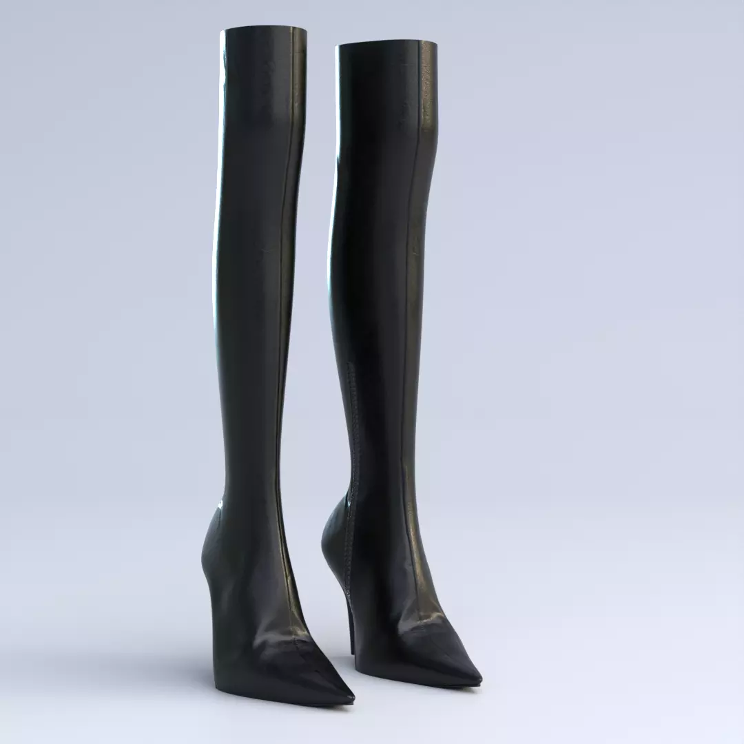 This model features a sleek knee-high silhouette with pointed toe and high heel, suitable for fashion visualization, product renders, animations, games, AR/VR, and cinematic shots. The mesh is well-structured, making it easy to edit, re-texture, or adapt for different workflows.