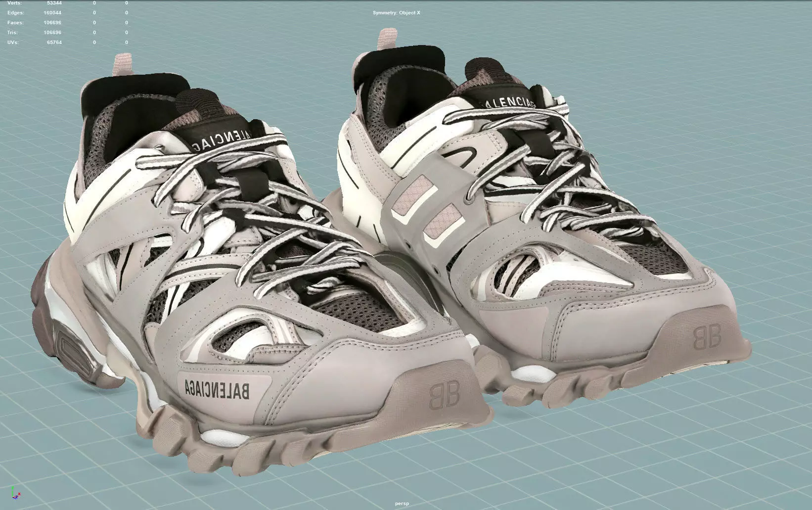 Balenciaga Track 3 grey casual fashion sneaker Low-poly 3D model
