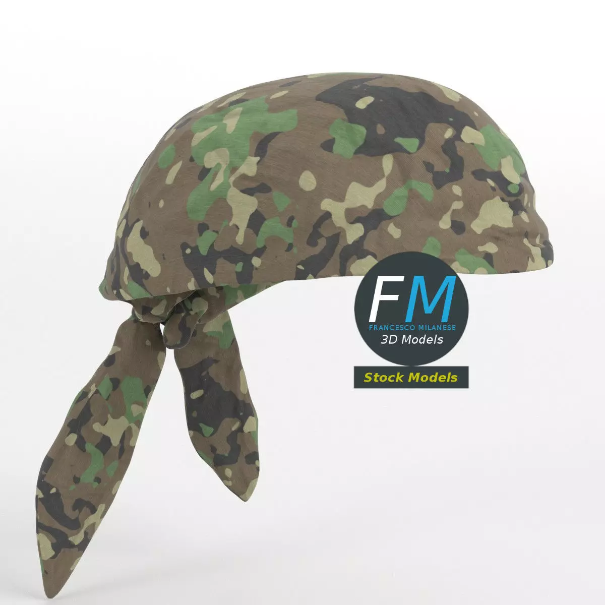 Bandana (or bandanna) 3D Model with army camouflage texture colors. Production-ready 3D Model, with PBR materials, textures, non overlapping UV Layout map provided in the package.