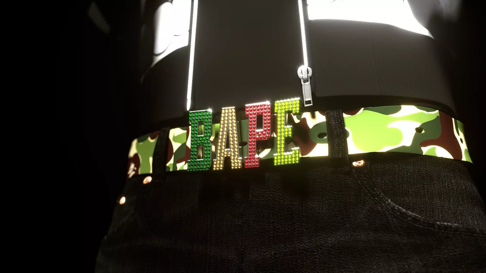 Logo Detail: Includes a jeweled BAPE buckle, often shaped like the Ape Head logo, adding a flashy, signature touch to the belt.