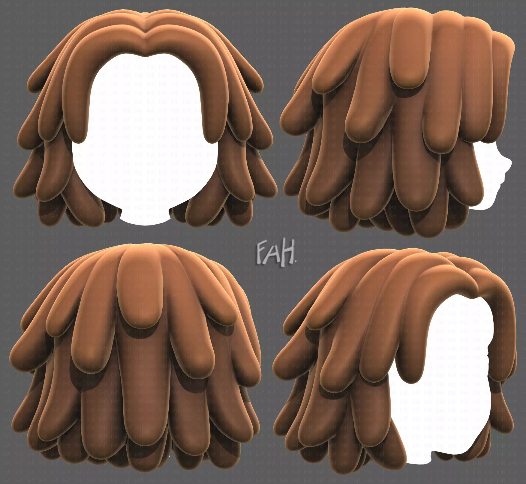 This is Base Hair for girl V38. It is cartoon hair for animation and game. Model clean topology based on quads and completely UV unwrapped. The hair is pretty low polygon.