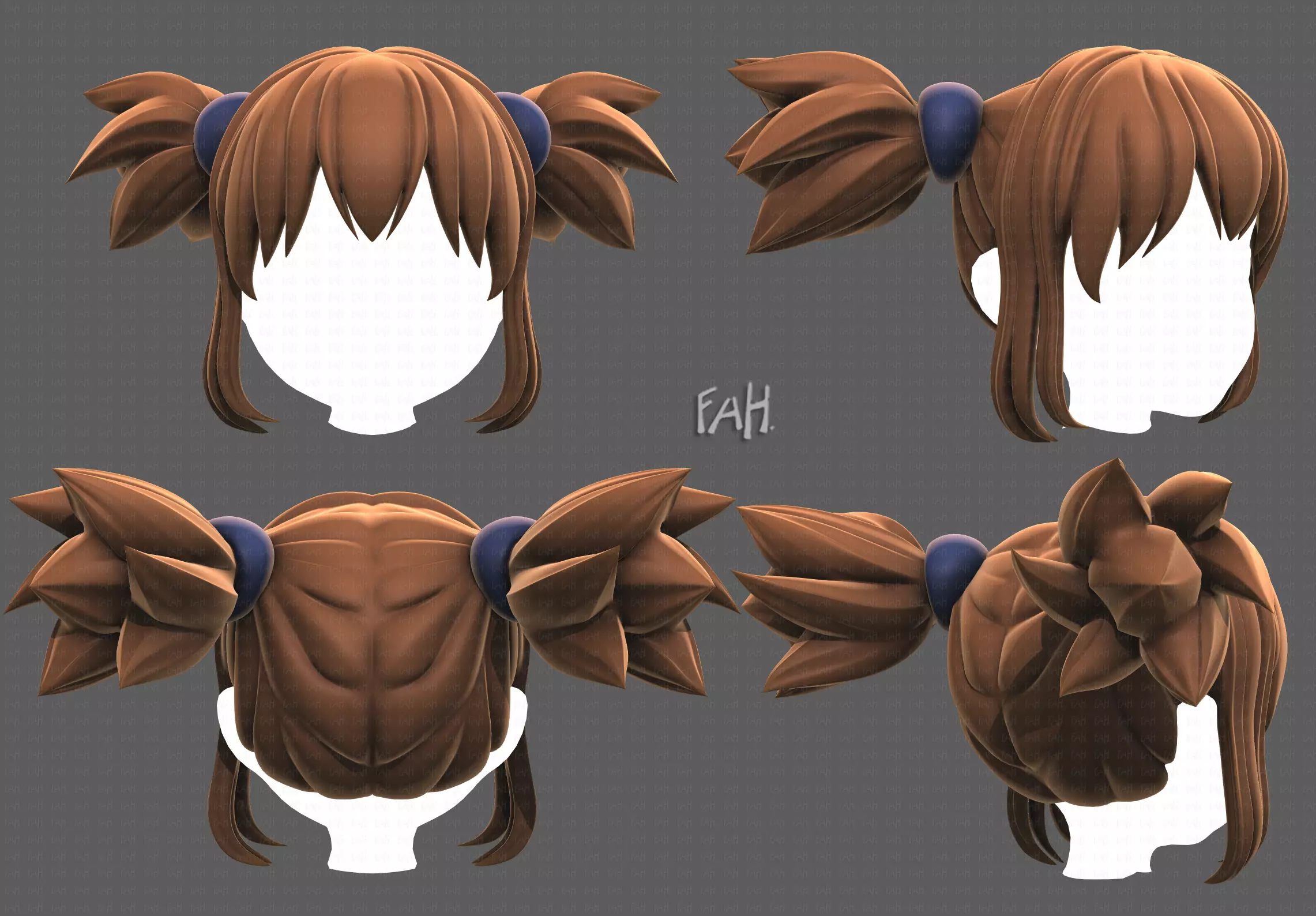 This is Base Hair for girl V42. It is cartoon hair for animation and game. Model clean topology based on quads and completely UV unwrapped. The hair is pretty low polygon.