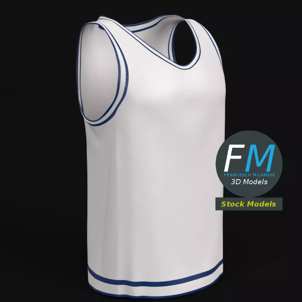 Basketball jersey mockup 3D Model; useful as a template or copy space for advertising, merchandising, etc... Production-ready 3D Model, with PBR materials, textures, non overlapping UV Layout map provided in the package.